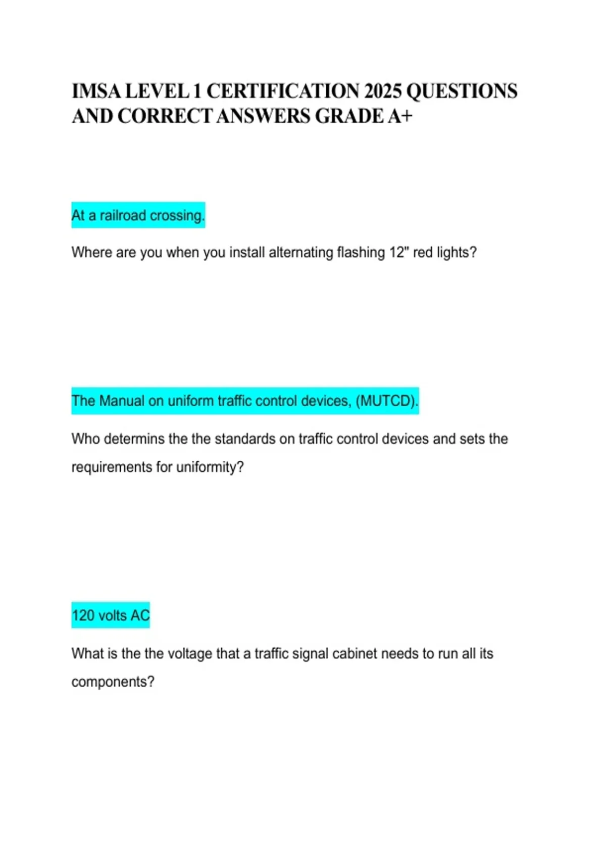 Prepare for the IMSA Level 1 Certification Exam 2025 with this study guide featuring verified questions and correct answers. Includes clear explanations and exam-focused content to support mastery of traffic signal and technician fundamentals. Ideal for achieving top results and confident performance on official IMSA certification exams.
