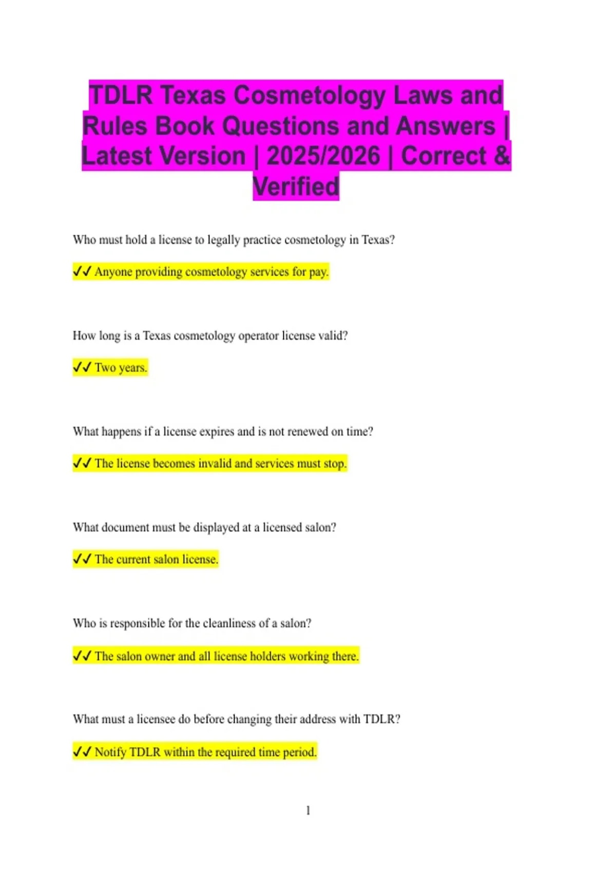 ✔✔ The current salon license.