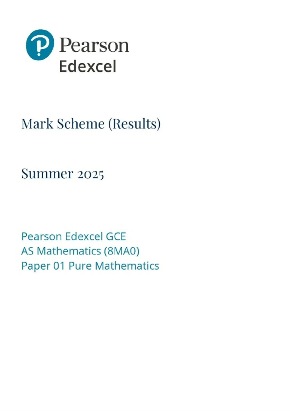 AS-Level EDEXCEL 2025 Mathematics Paper 1 Mark Scheme
