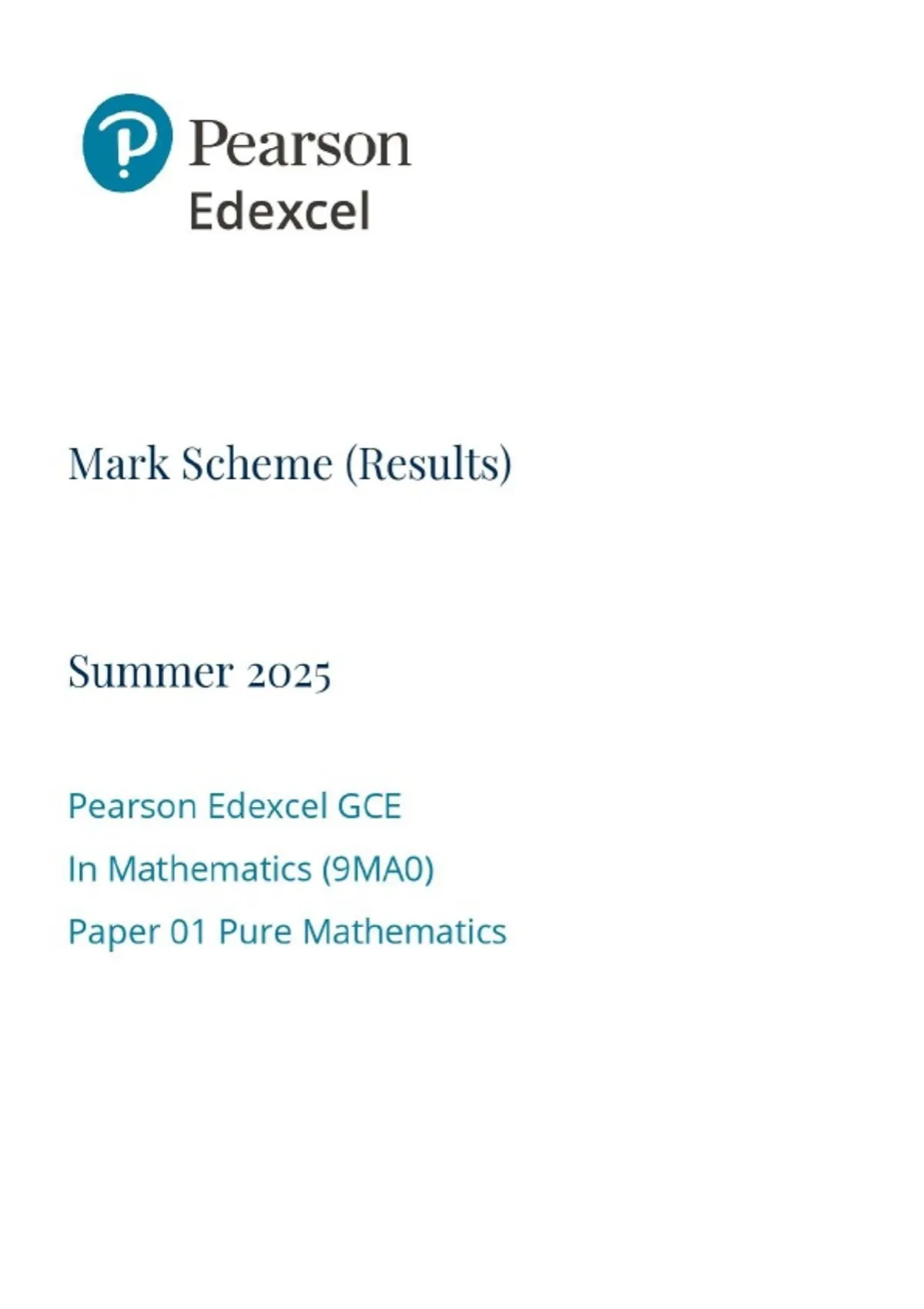 A-Level EDEXCEL 2025 Mathematics Paper 1 Mark Scheme