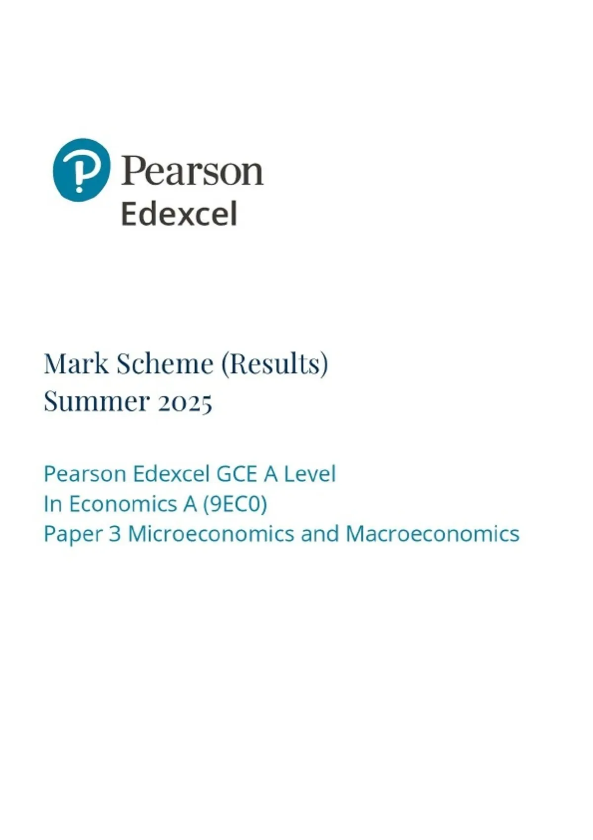A-Level EDEXCEL 2025 Economics A Paper 3 Mark Scheme