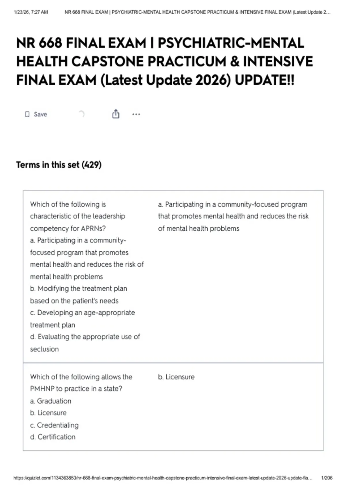 https://quizlet.com/1134363853/nr-668-final-exam-psychiatric-mental-health-capstone-practicum-intensive-final-exam-latest-update-2026-update-fla… 2/206