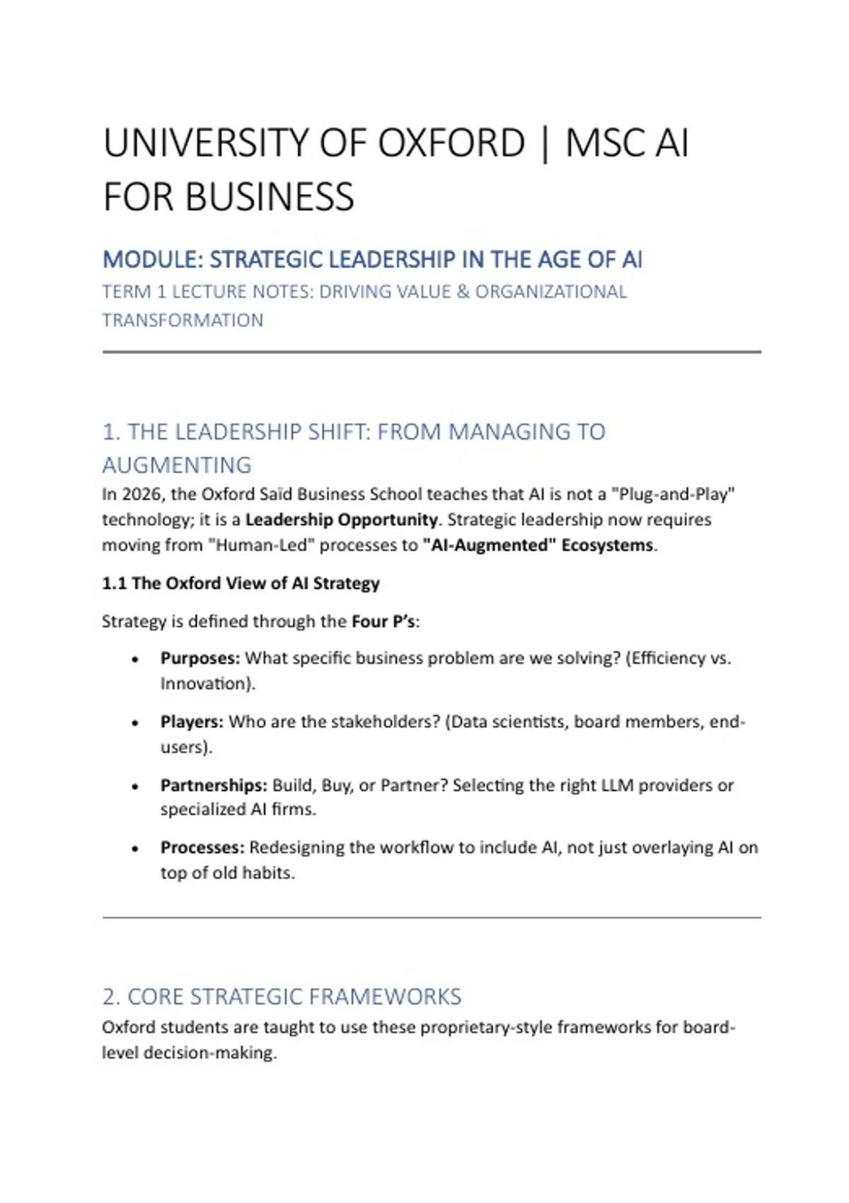 Oxford MSc AI for Business: Strategic Leadership & Transformation – 2026 Master Study Notes