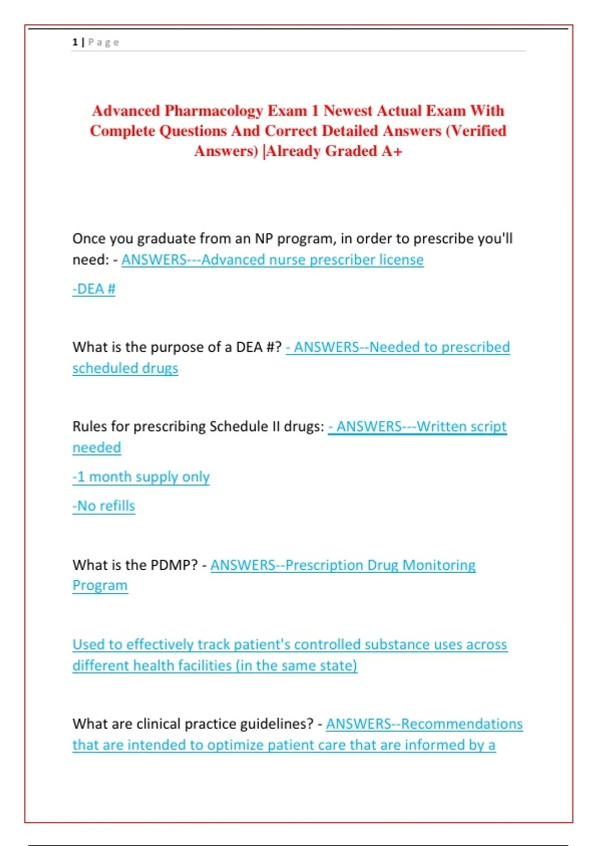 Ace your Advanced Pharmacology exam with this all-in-one study resource! Packed with the newest actual exam questions, detailed verified answers, and clear explanations on pharmacokinetics, drug interactions, antibiotics, and more. Perfect for NP students, nurses, and medical professionals looking to master pharmacology concepts and pass with confidence. Already graded A+ — your shortcut to exam success!