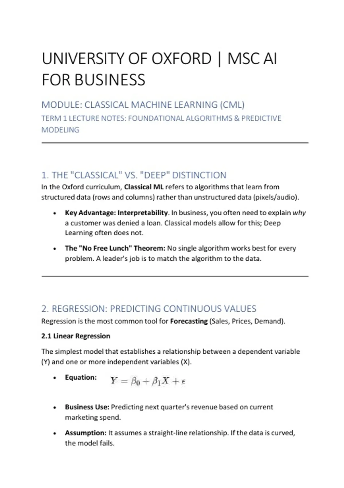 TERM 1 LECTURE NOTES: FOUNDATIONAL ALGORITHMS & PREDICTIVE