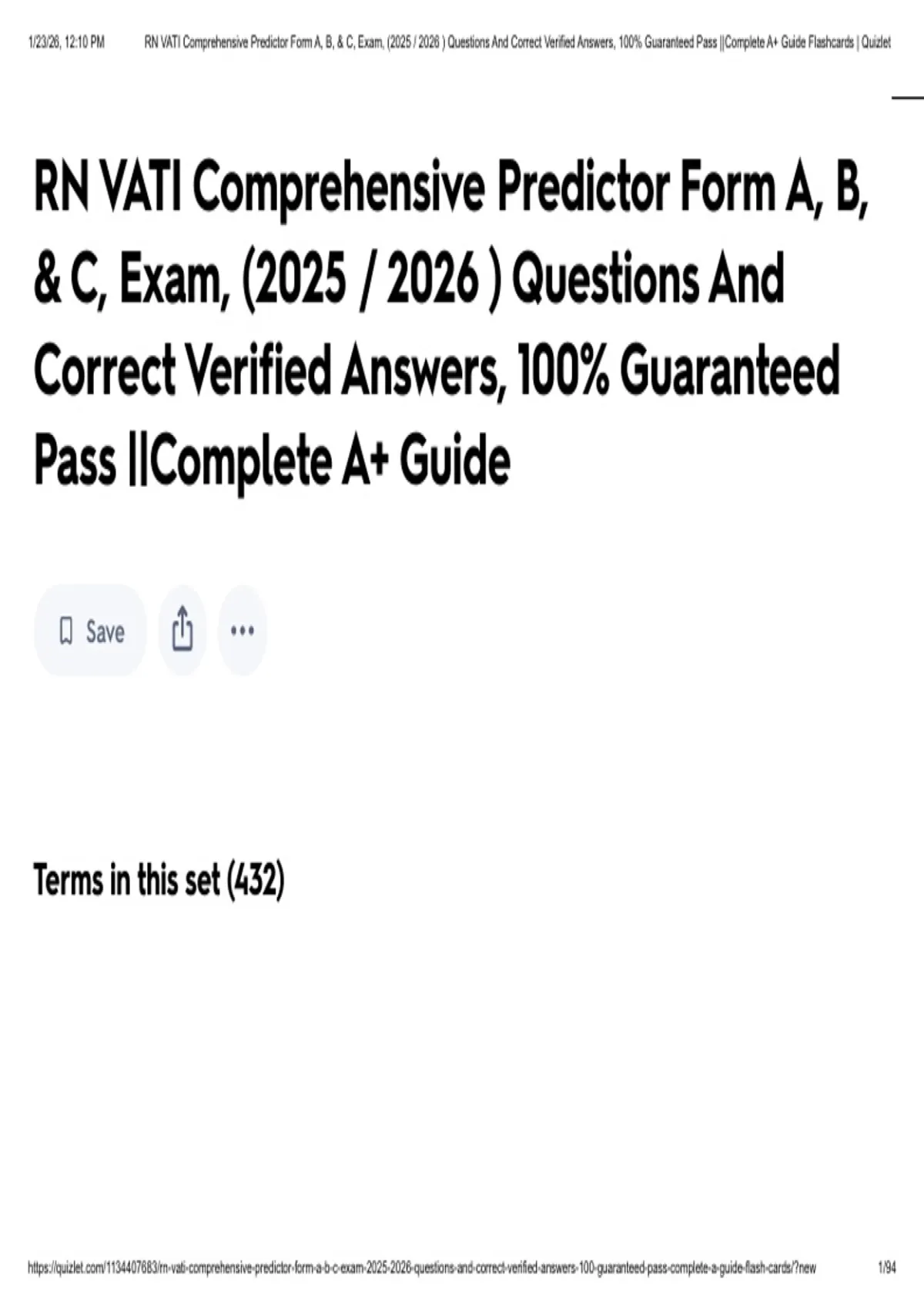 , 1/23/26, 12:10 PM RN VATI Comprehensive Predictor Form A, B, & C, Exam, ( ) Questions And Correct Verified Answers, 100% Guaranteed Pass ||Complete A+ Guide Flashcards | Quizlet