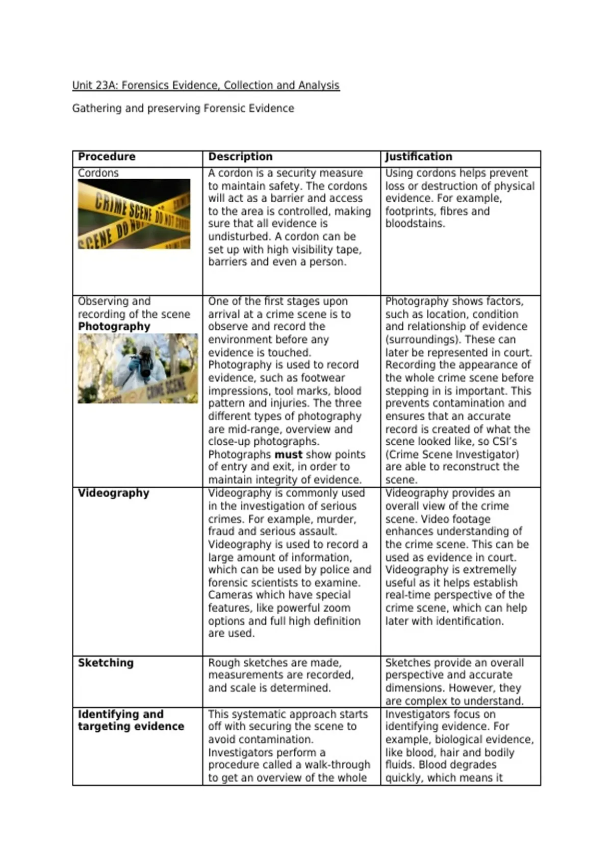 targeting evidence off with securing the scene to identifying evidence. For