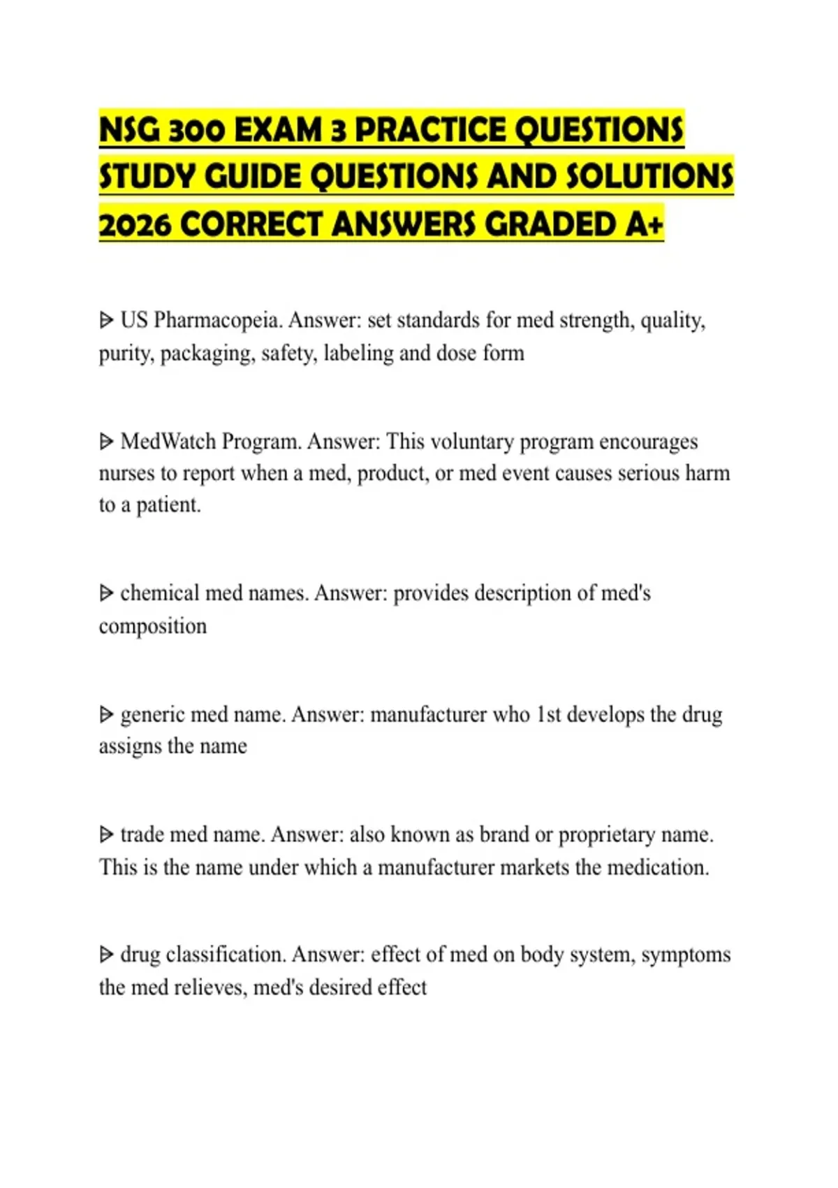 NSG 300 EXAM 3 PRACTICE QUESTIONS STUDY GUIDE QUESTIONS AND SOLUTIONS 2026 CORRECT ANSWERS GRADED A+