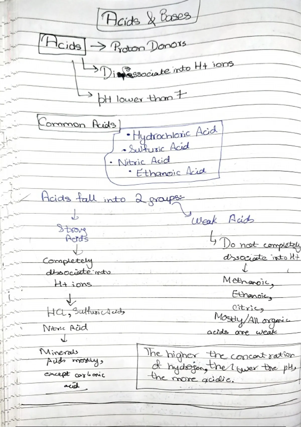 Summary IGCSE Chemistry CIE | Acids and Basis with reactions and tests - A* Handwritten Notes