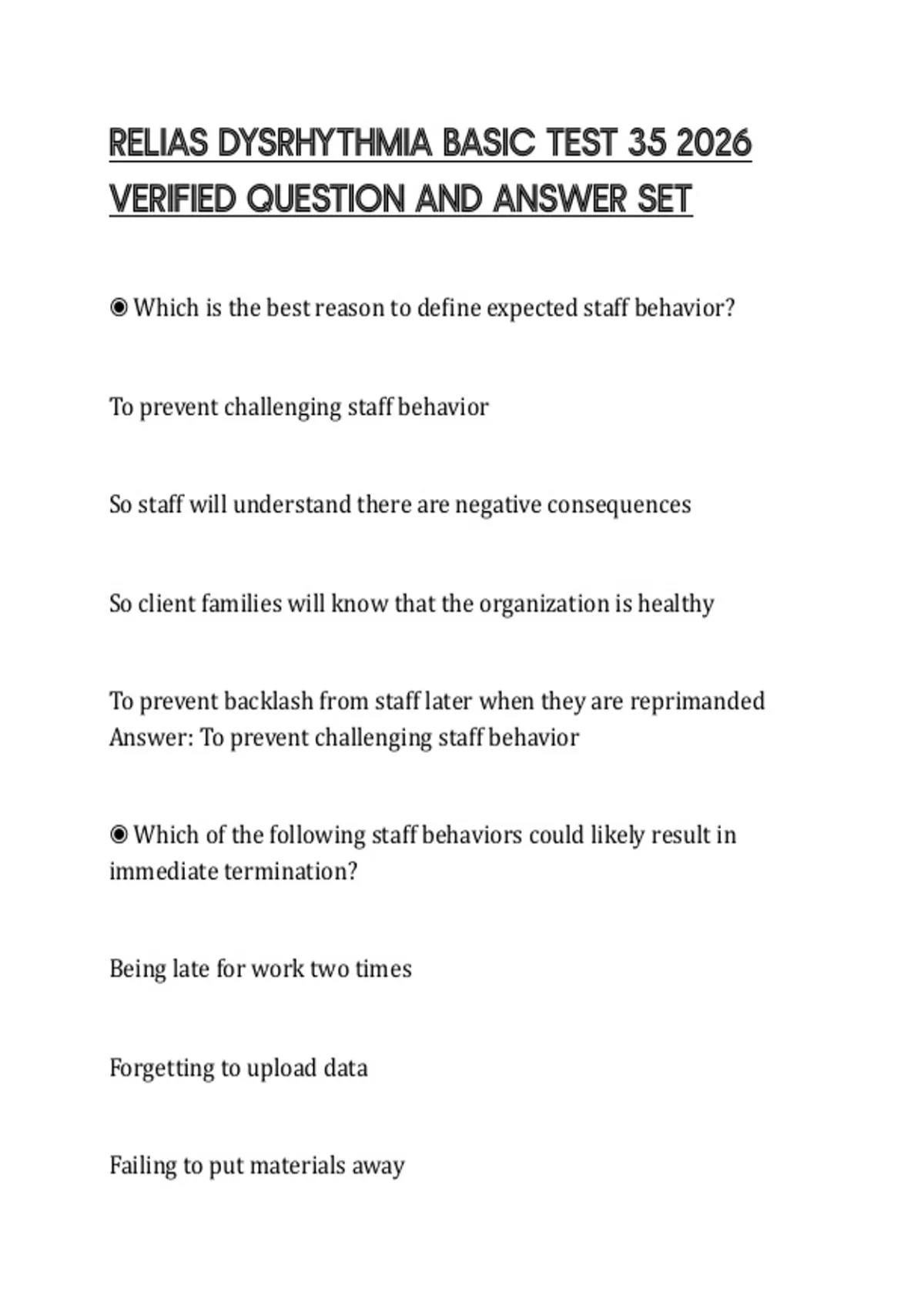 RELIAS DYSRHYTHMIA BASIC TEST 35 2026 VERIFIED QUESTION AND ANSWER SET