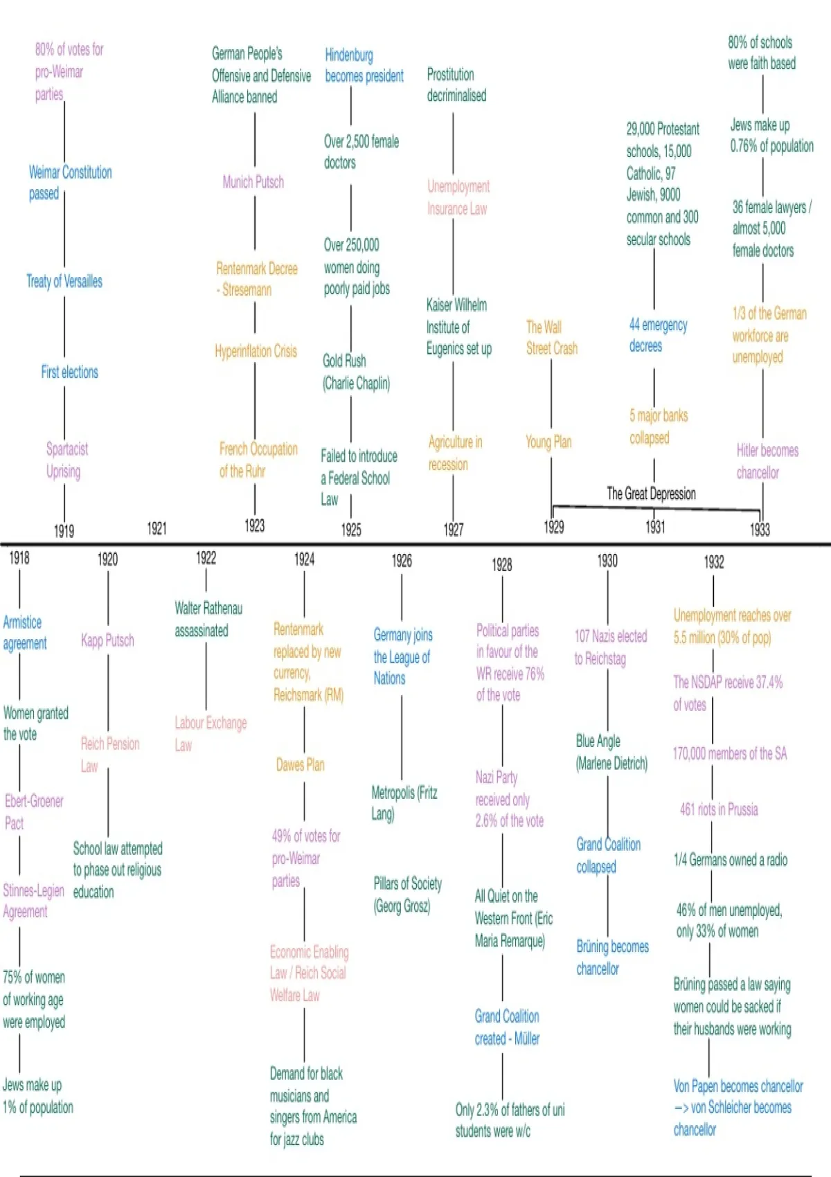 Colour-coded exhaustive timelines for all topics and periods in Germany and West Germany module.