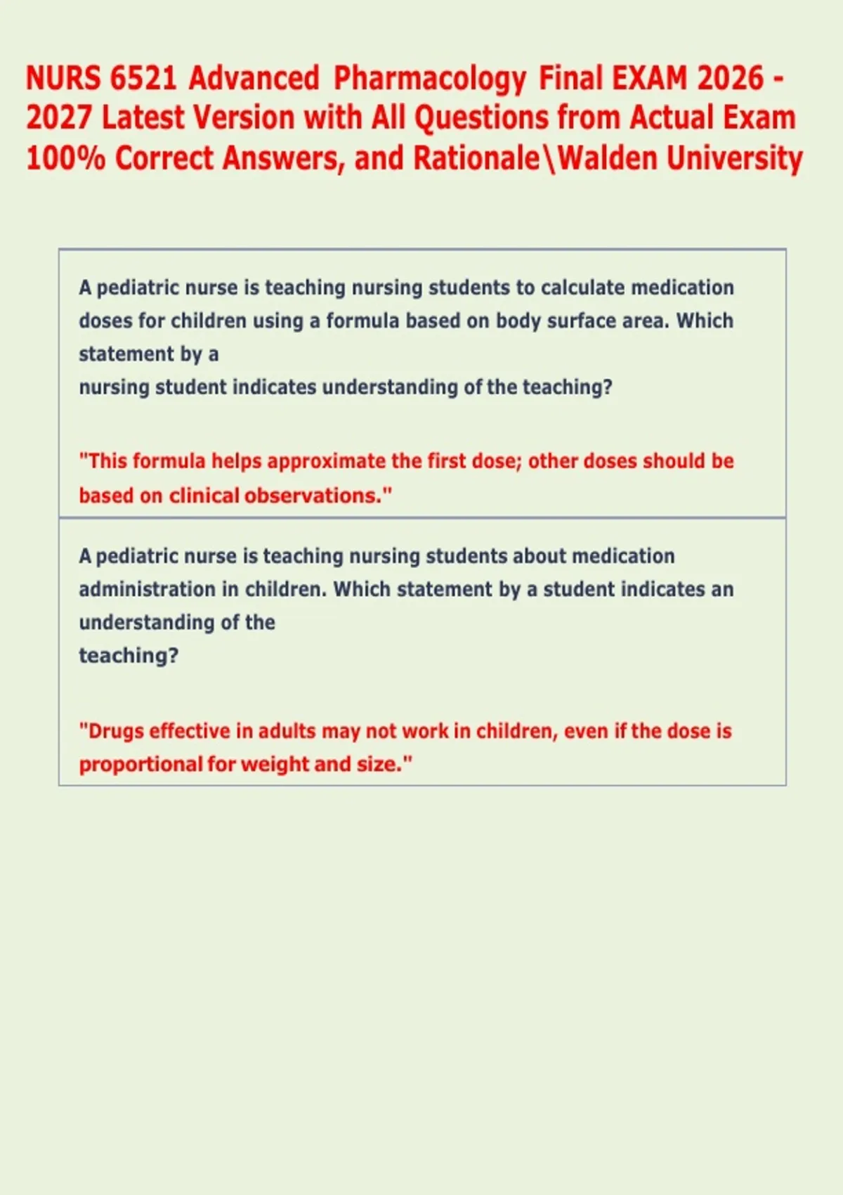 ,A nurse is teaching nursing students about pediatric medication