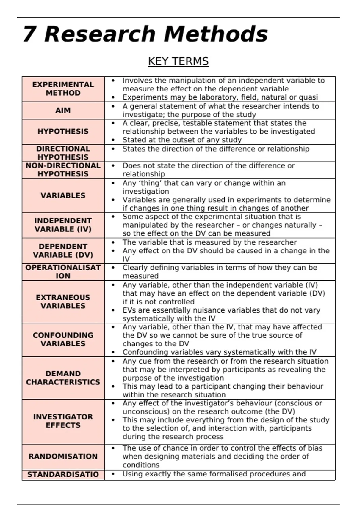 Summary A-Level Psychology: Research Methods Revision Notes (A/A*)