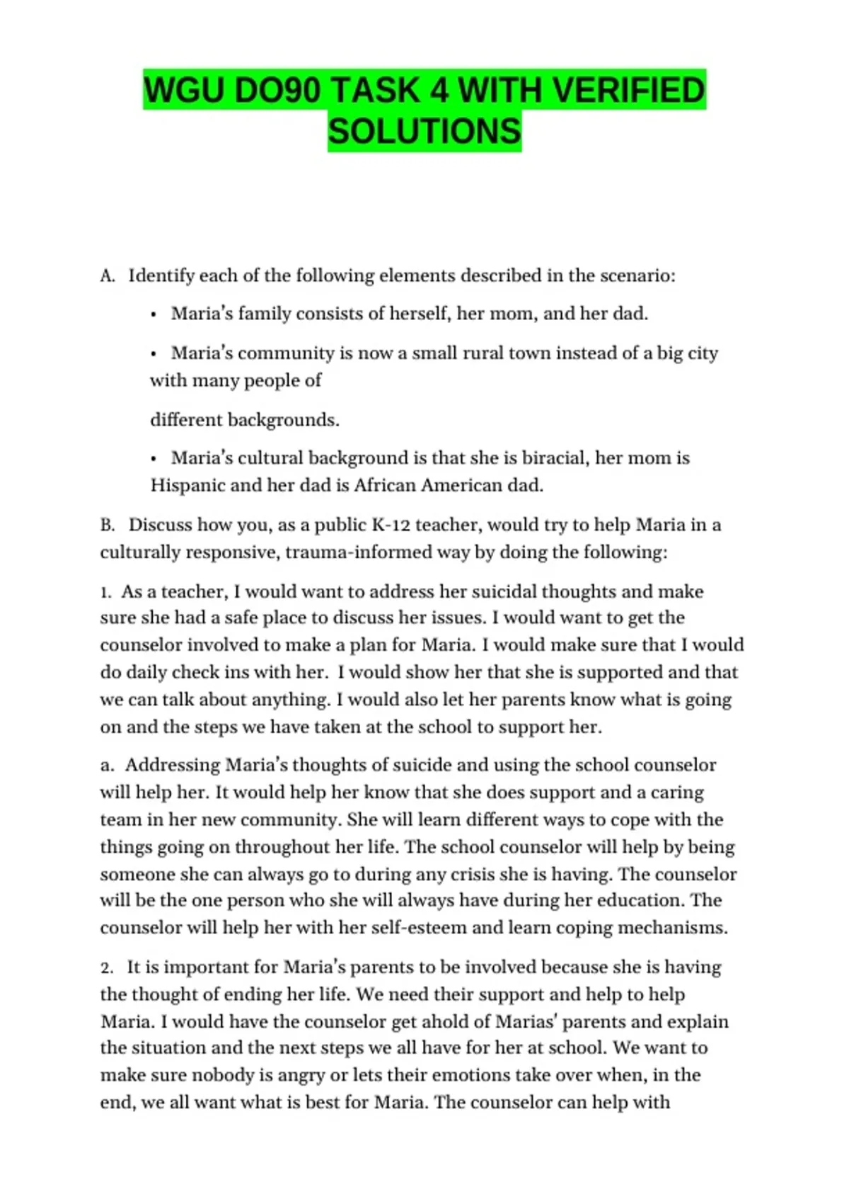 a. Addressing Maria’s thoughts of suicide and using the school counselor