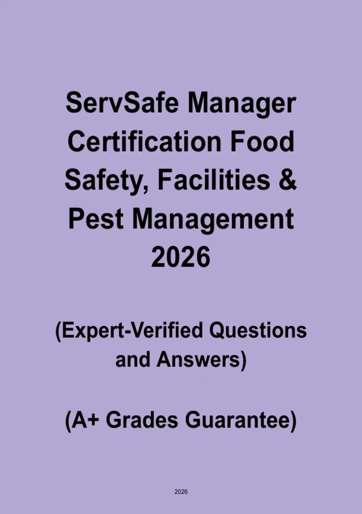 The ServSafe Manager Certification: Food Safety, Facilities & Pest Management guide is a complete study resource for candidates preparing for the ServSafe Manager Certification exam. Covering essential topics such as food safety principles, facility hygiene, pest control, HACCP guidelines, sanitation, and regulatory compliance, this guide provides detailed explanations, practical examples, and exam-focused content. Ideal for first-time and repeat test takers, it strengthens understanding of key food safety concepts, improves exam readiness, and ensures confidence to pass the ServSafe Manager Certification exam.