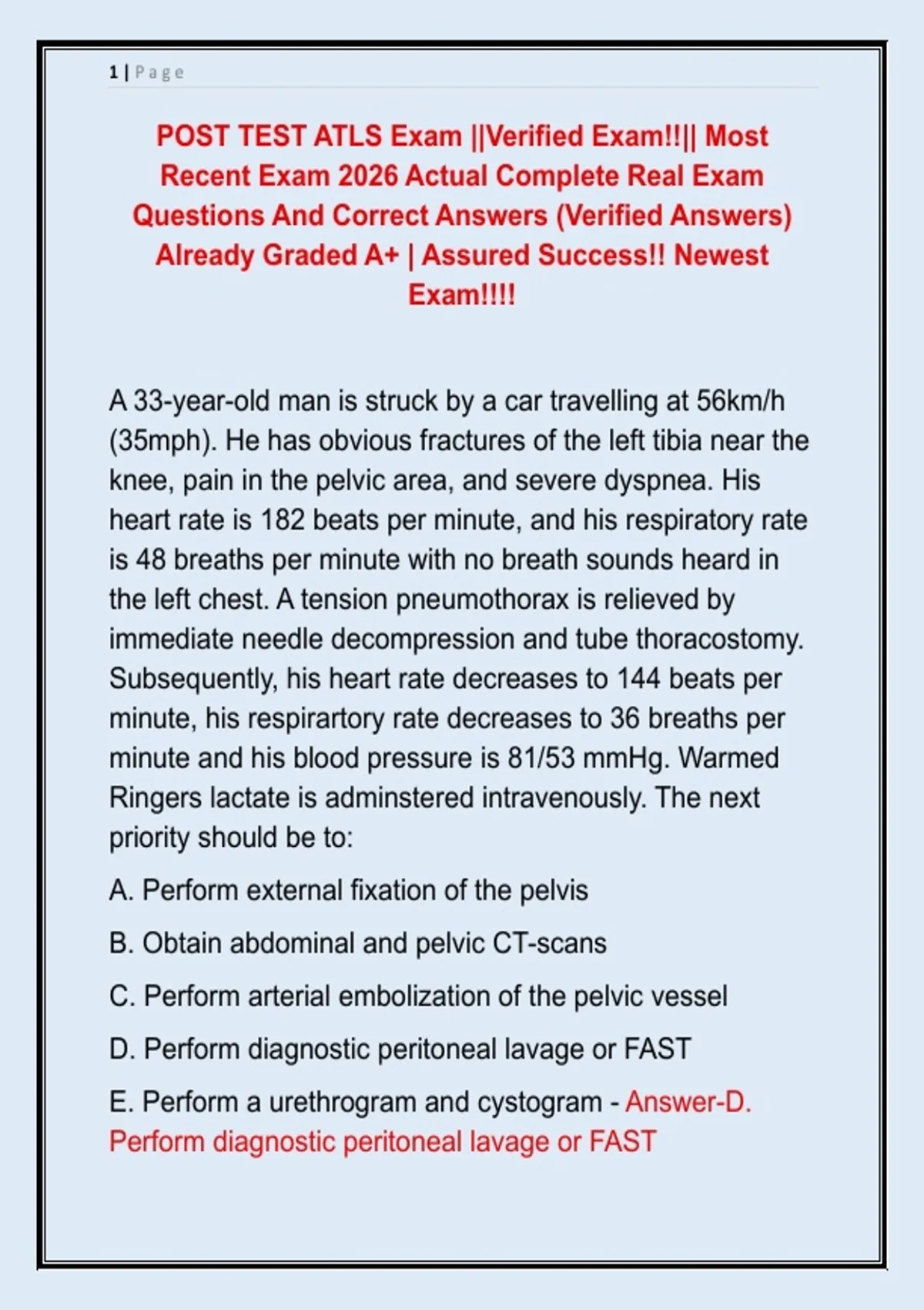 POST TEST ATLS Exam ||Verified Exam!!|| Most