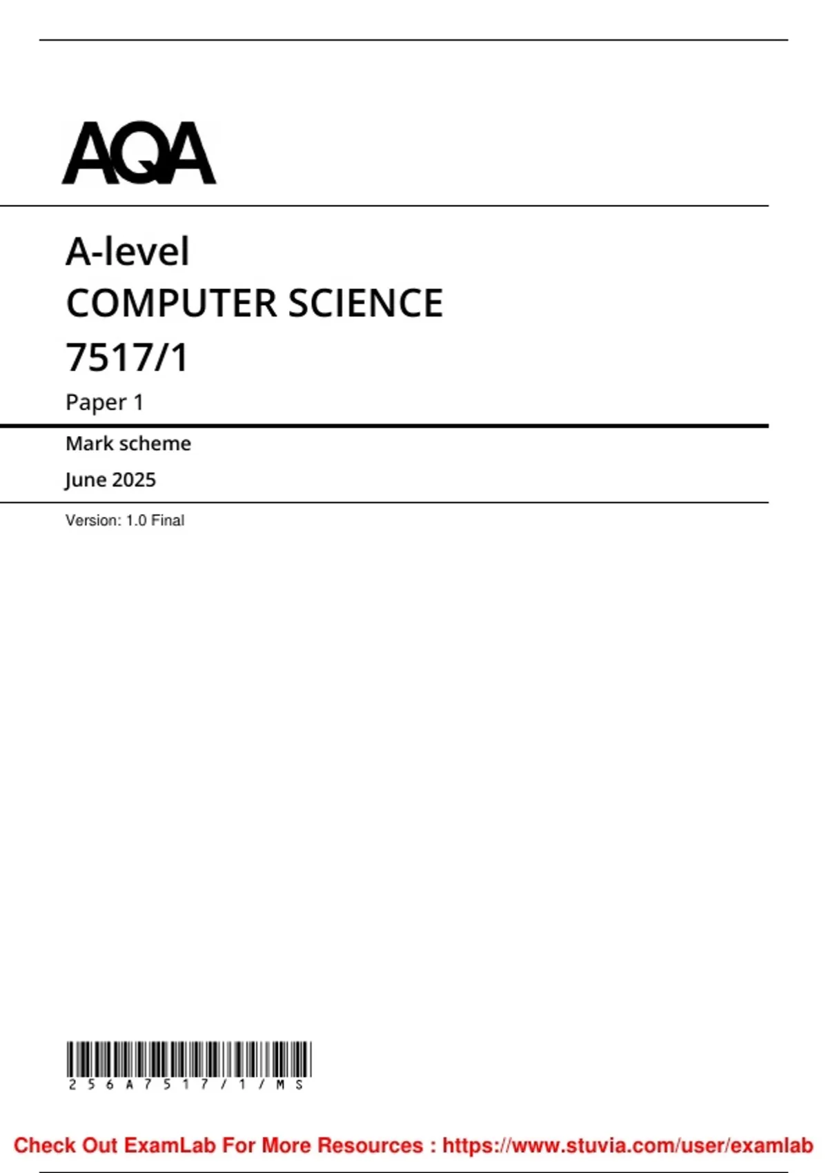 , MARK SCHEME – A-LEVEL COMPUTER SCIENCE – 7517/1 – JUNE 2025