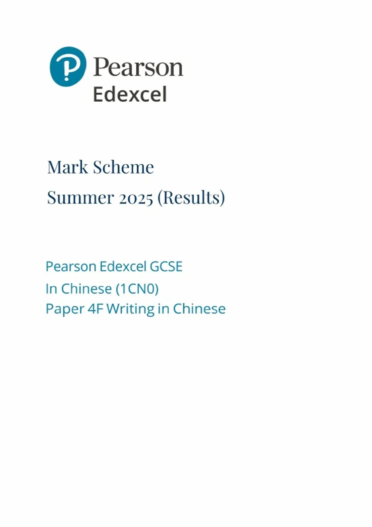 2025 Pearson Edexcel GCSE Chinese PAPER 4 MARK SCHEME 1CN0/4F : Writing in Chinese