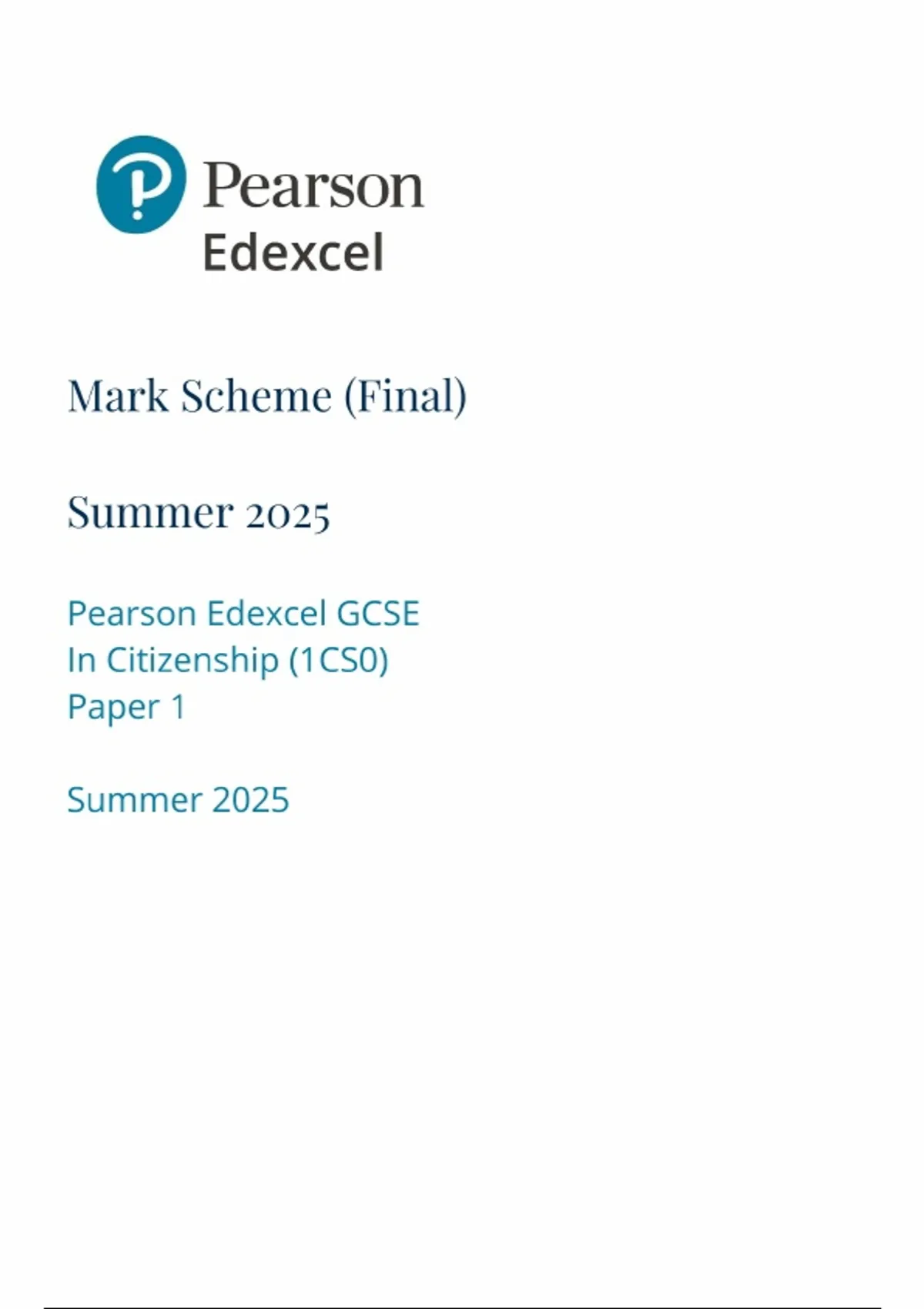 - 2025 Pearson Edexcel GCSE Citizenship Studies PAPE