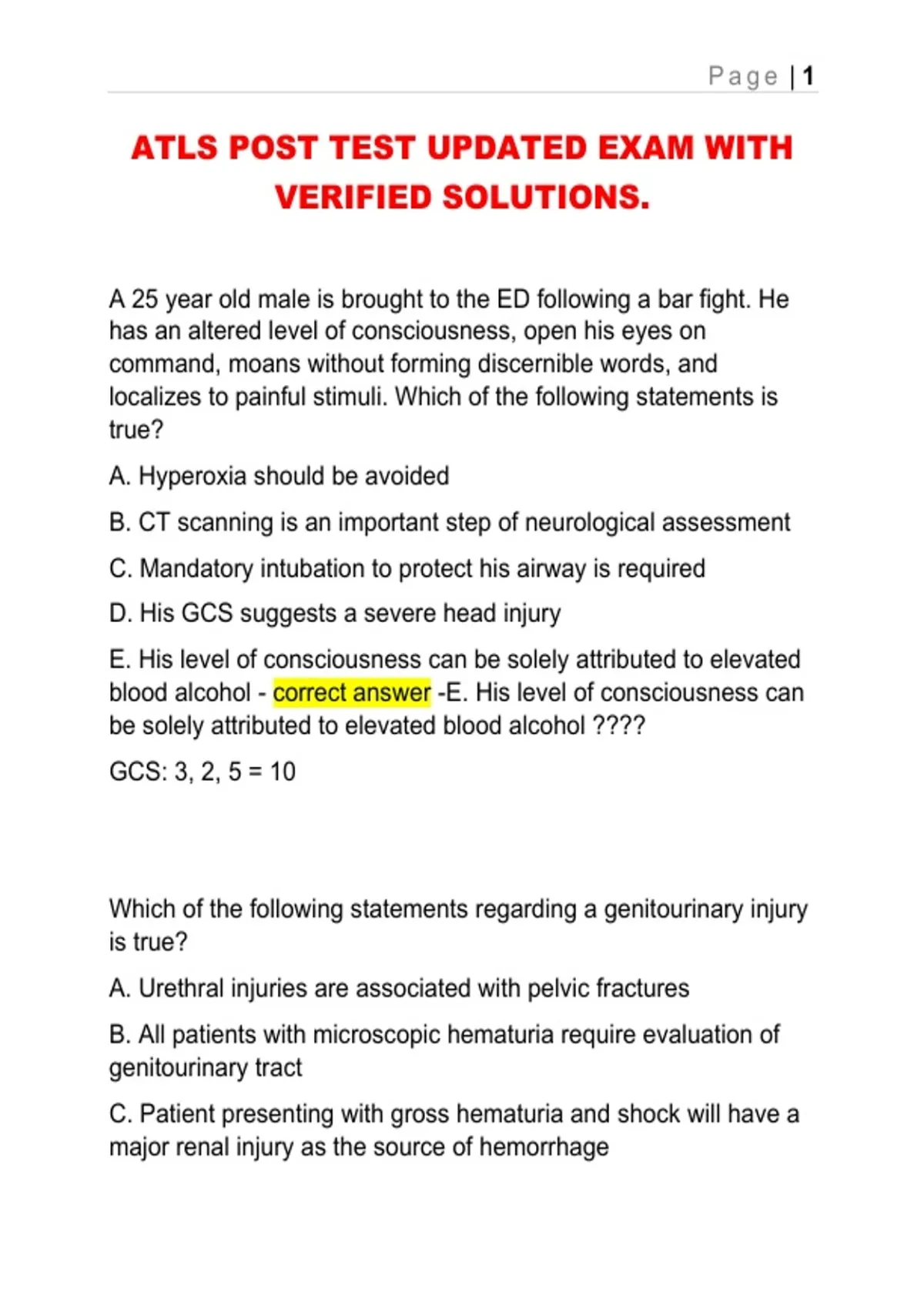 ATLS POST TEST UPDATED EXAM WITH