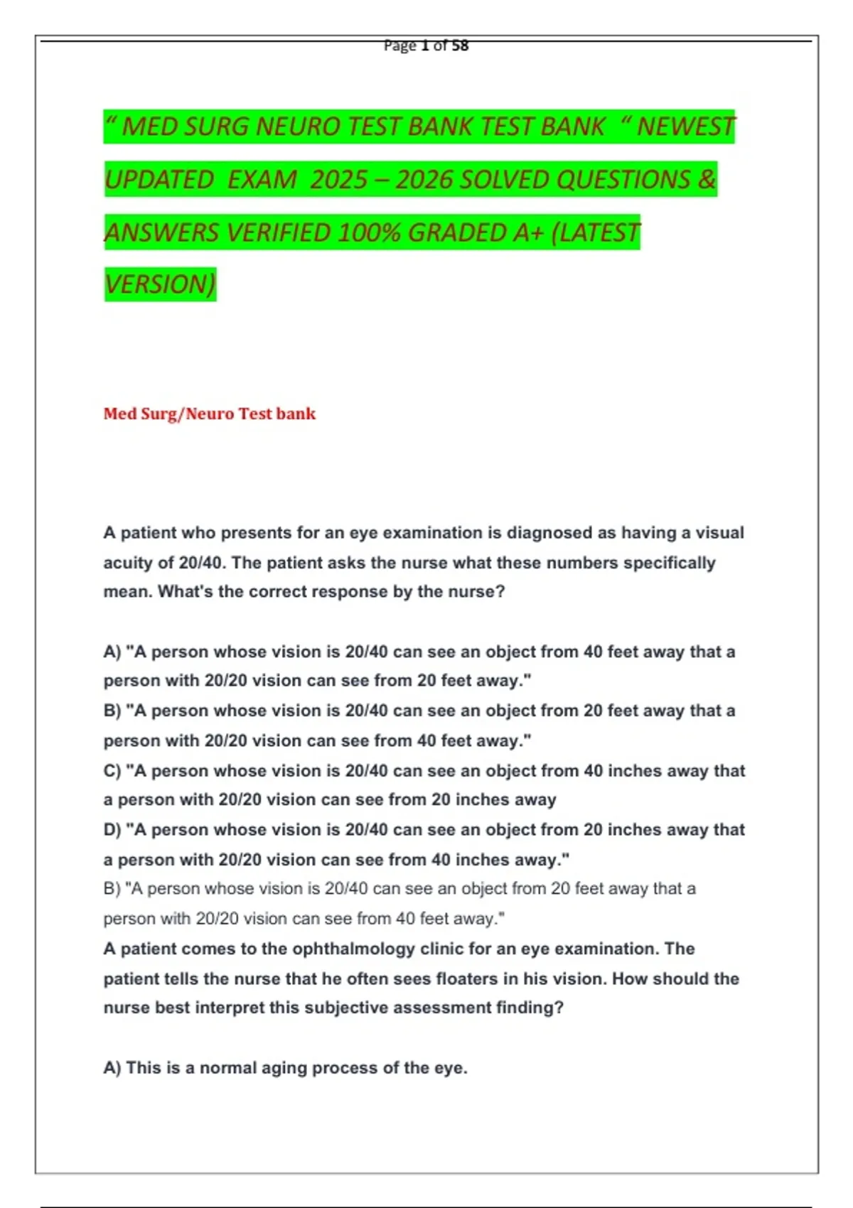 “ MED SURG NEURO TEST BANK TEST BANK “ NEWEST