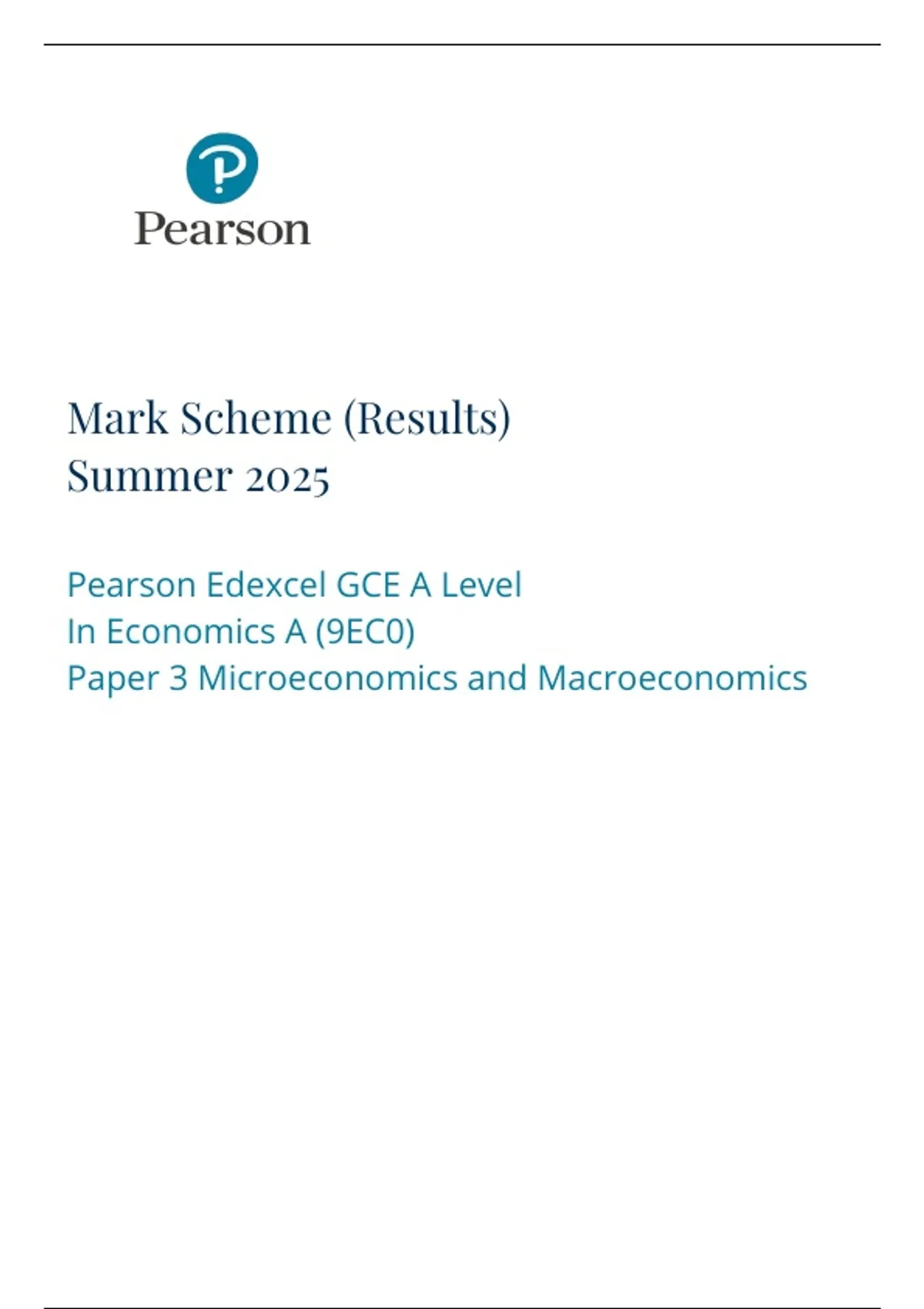 Edexcel A Level Economics Paper 3 (9EC0/03) 2025 – Examiner Mark Scheme (June Exam)