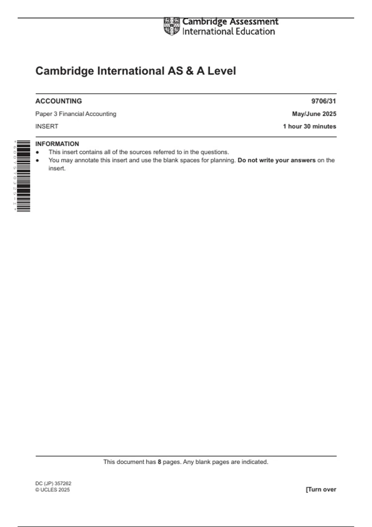 © UCLES 2025 9706/31/INSERT/M/J/25