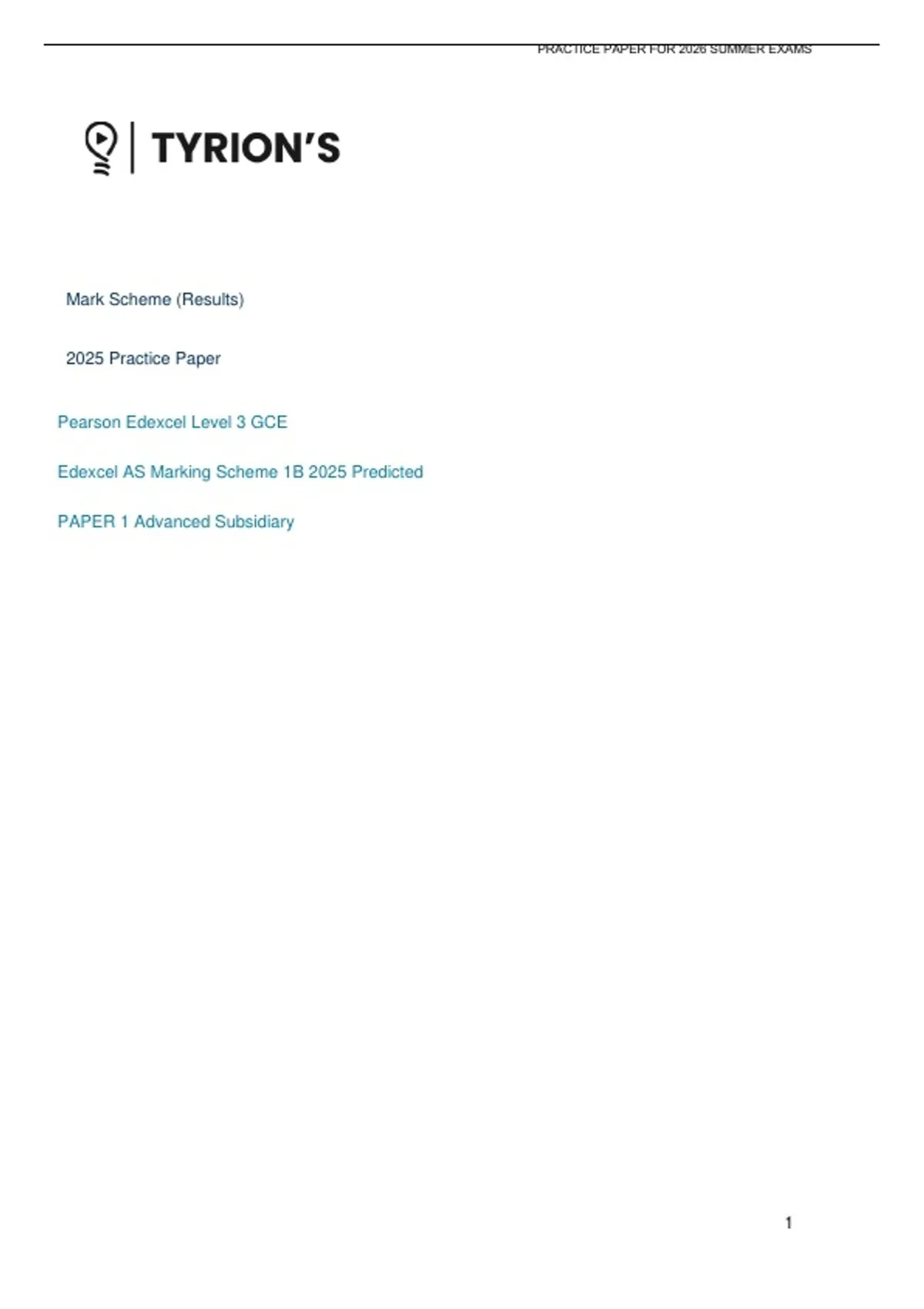 Edexcel AS Marking Scheme 1B 2025 Predicted