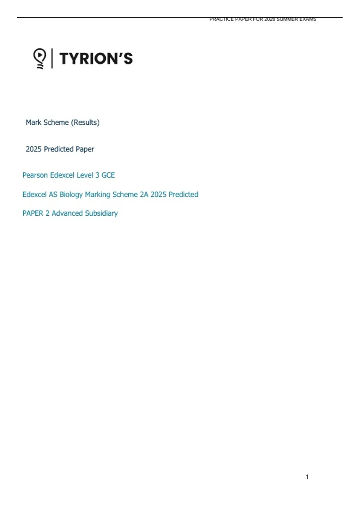 Edexcel AS Biology A Marking Scheme 2 2025 Predicted 2026 PRACTICE PAPER