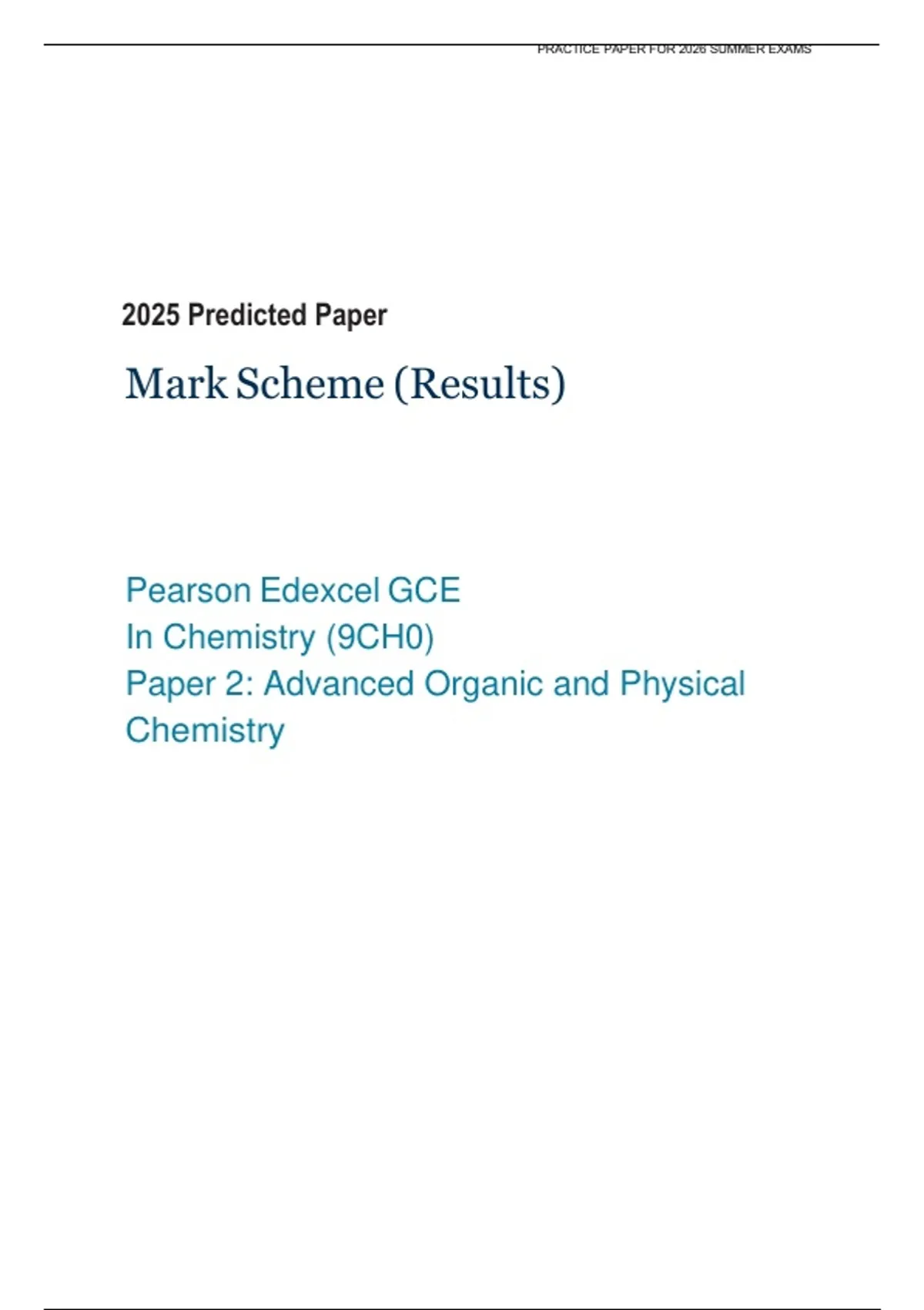 EDEXCEL A LEVEL CHEMISTRY 2026 PRACTICE PAPER 2 MARK SCHEME 2026 PRACTICE PAPER