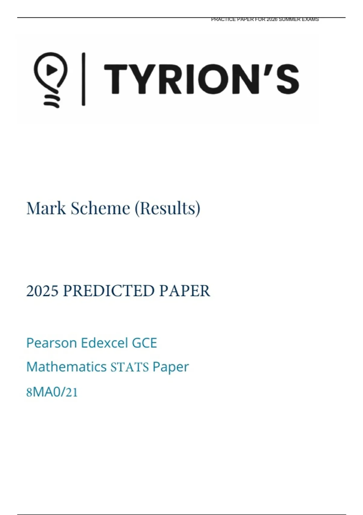 EDEXCEL AS MATHS 2025 PREDICTED PAPER STATS MS 2026 PRACTICE PAPER