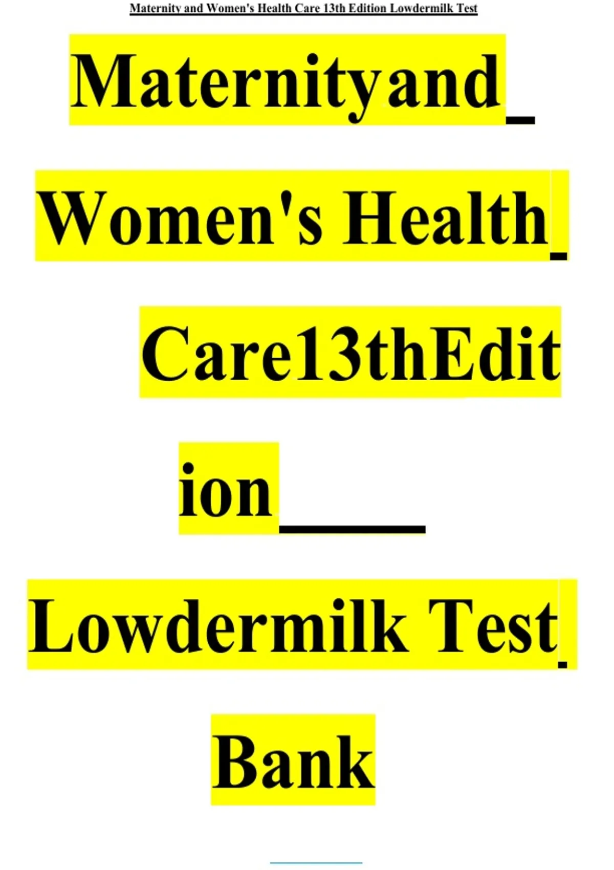 , Maternity and Women's Health Care 13th Edition Lowdermilk Test