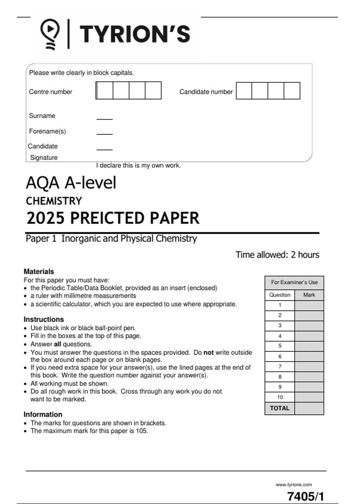 • the Periodic Table/Data Booklet, provided as an insert (enclosed)