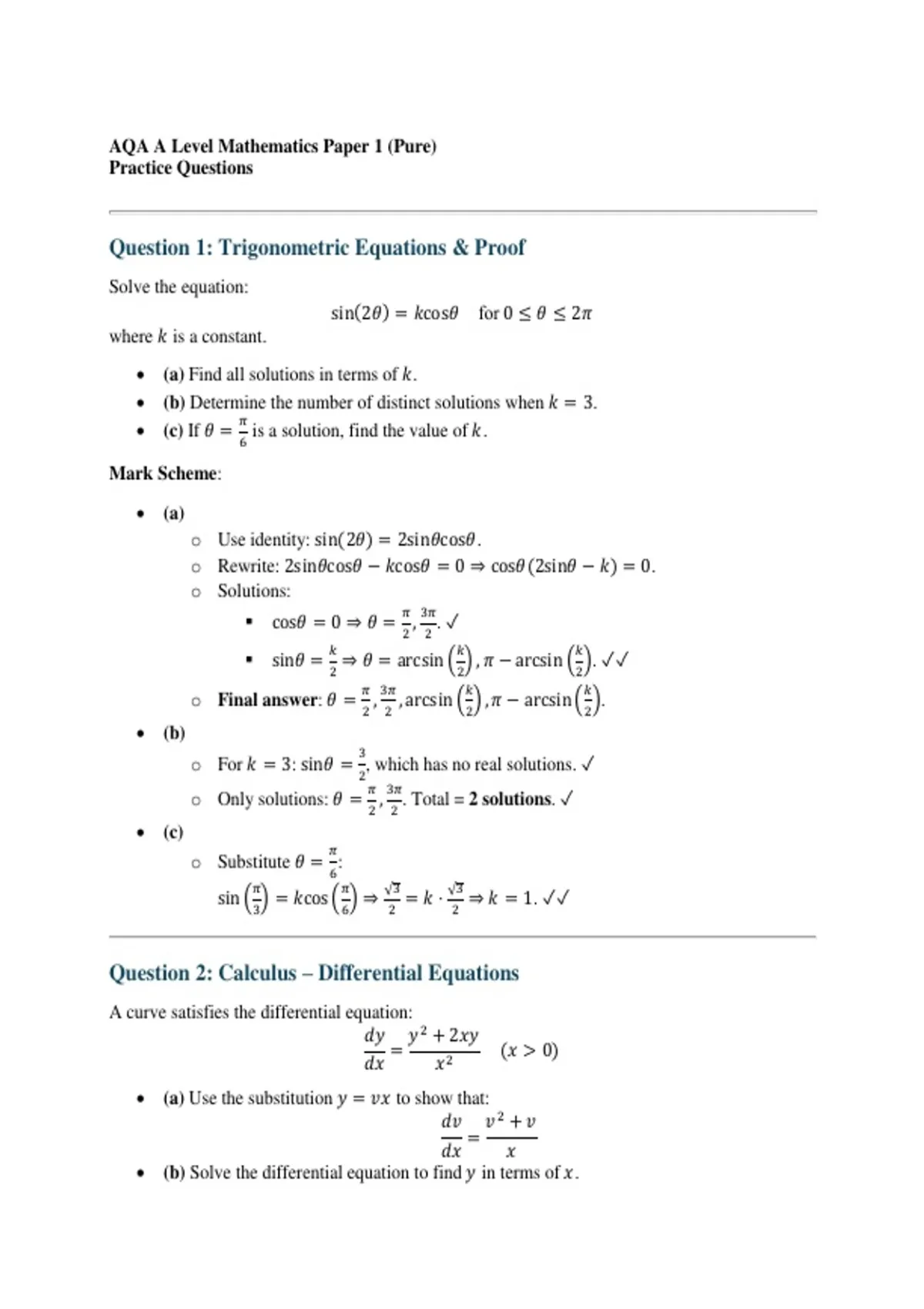 (c) If 𝜃 = 6 is a solution, find the value of 𝑘.
