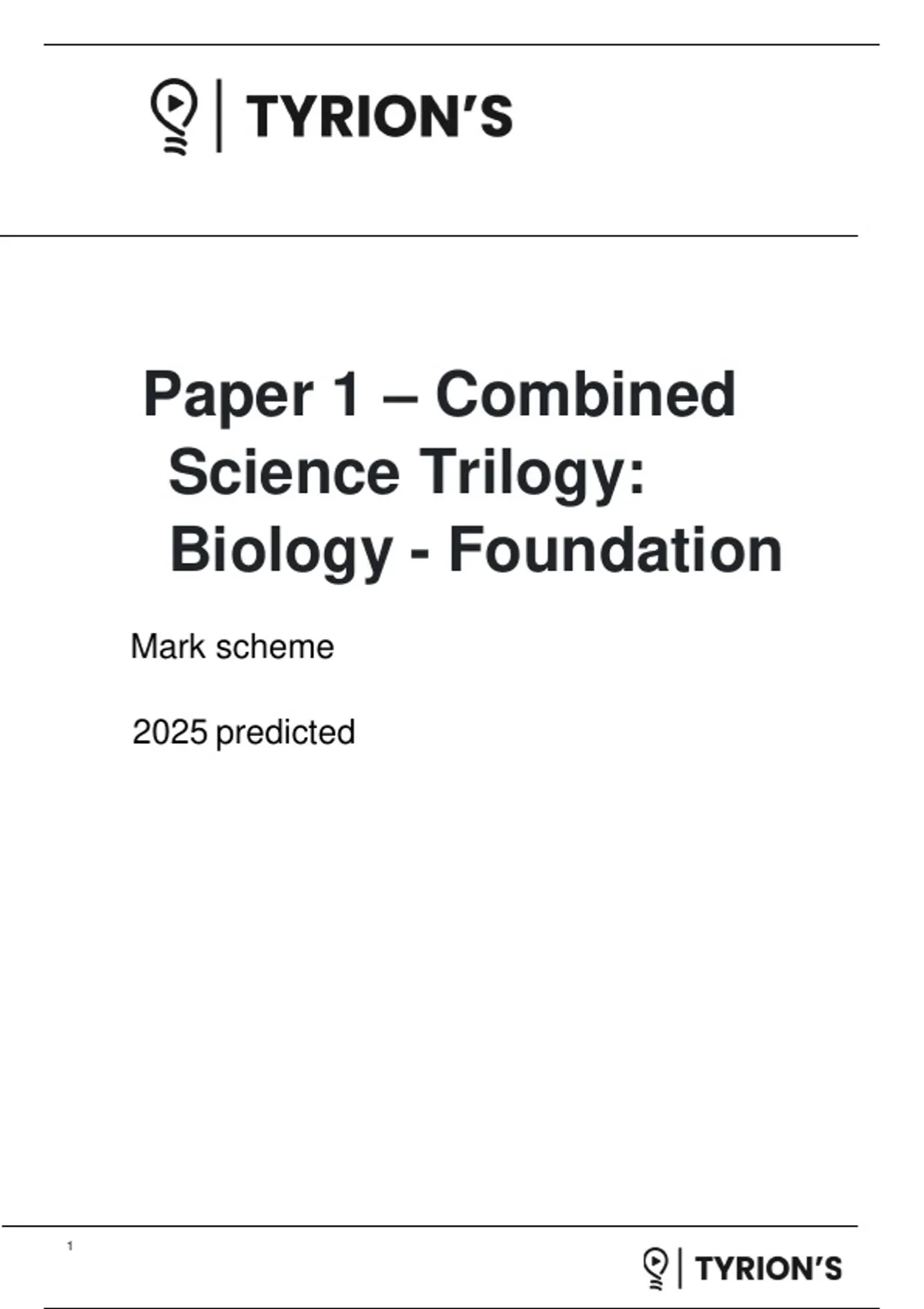 AQA GCSE COMBINED SCIENCE_ TRIOLOGY BIOLOGY 1F 2025 PREDICTED MARK SCHEME