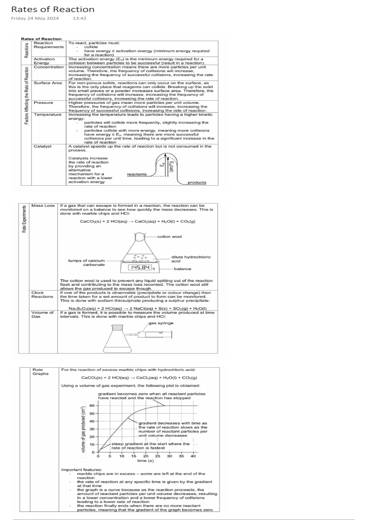 Summary Notes for Rates of Reaction - Chemistry iGCSE Pearson Edexcel