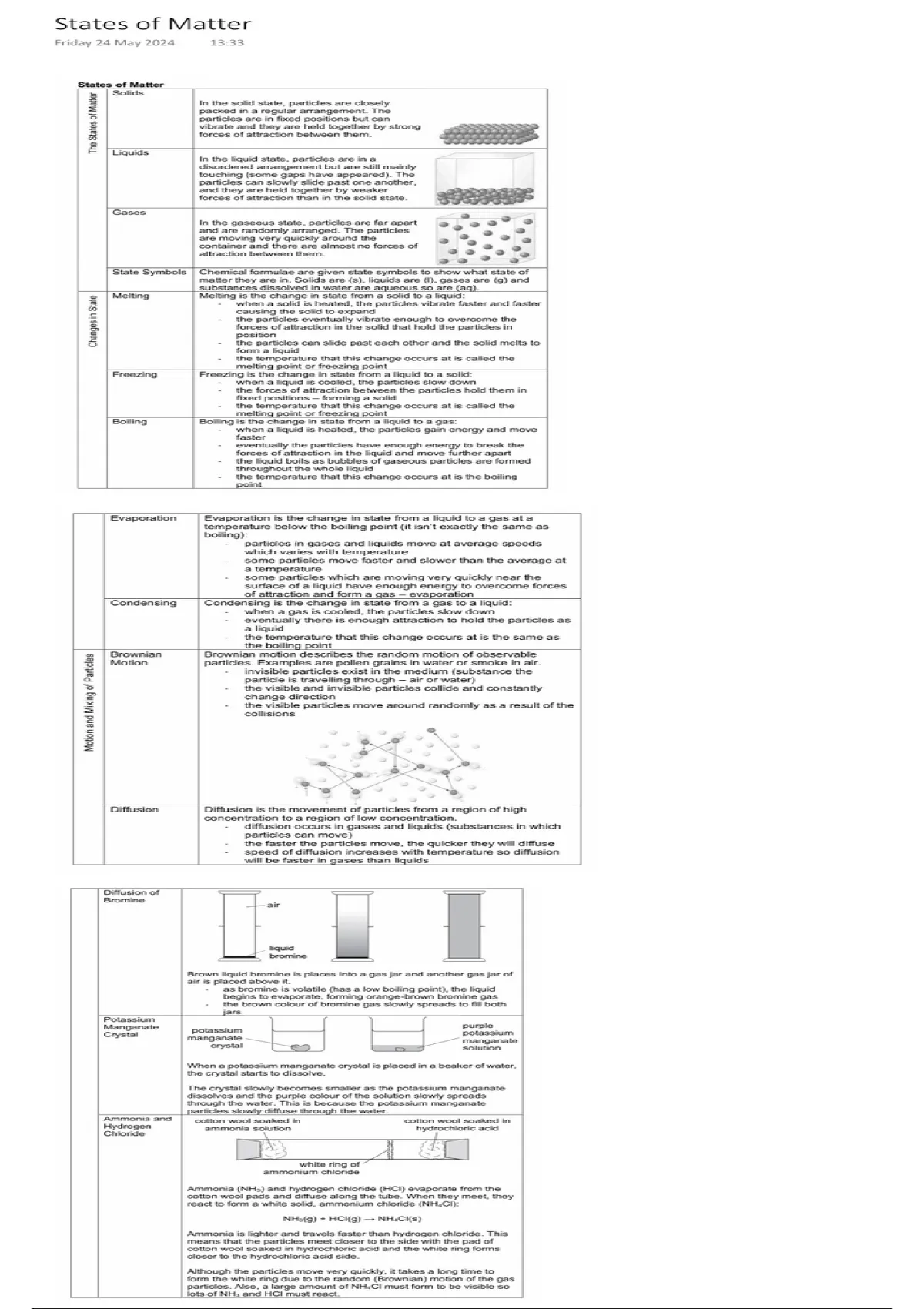 Summary Notes for States of Matter - Chemistry iGCSE Pearson Edexcel