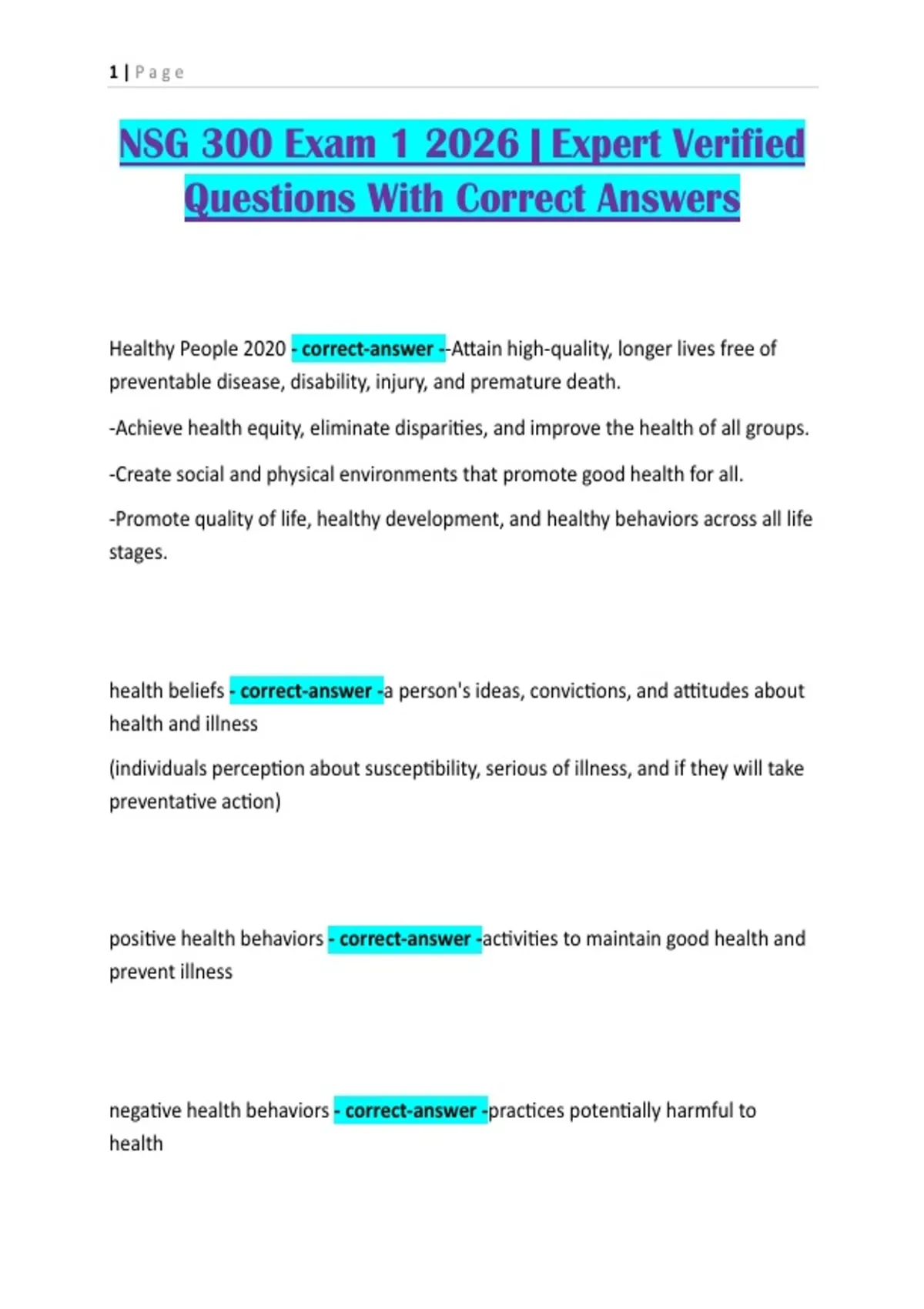 NSG 300 Exam 1 2026 | Expert Verified