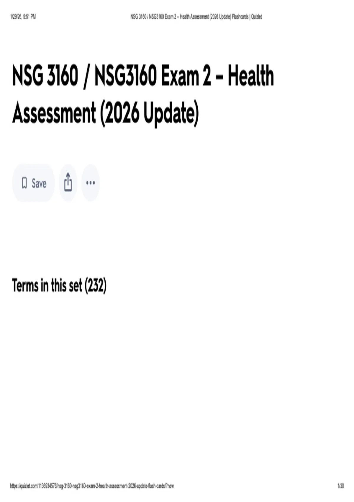 https://quizlet.com/1136934576/nsg-3160-nsg3160-exam-2-health-assessment-2026-update-flash-cards/?new 1/30