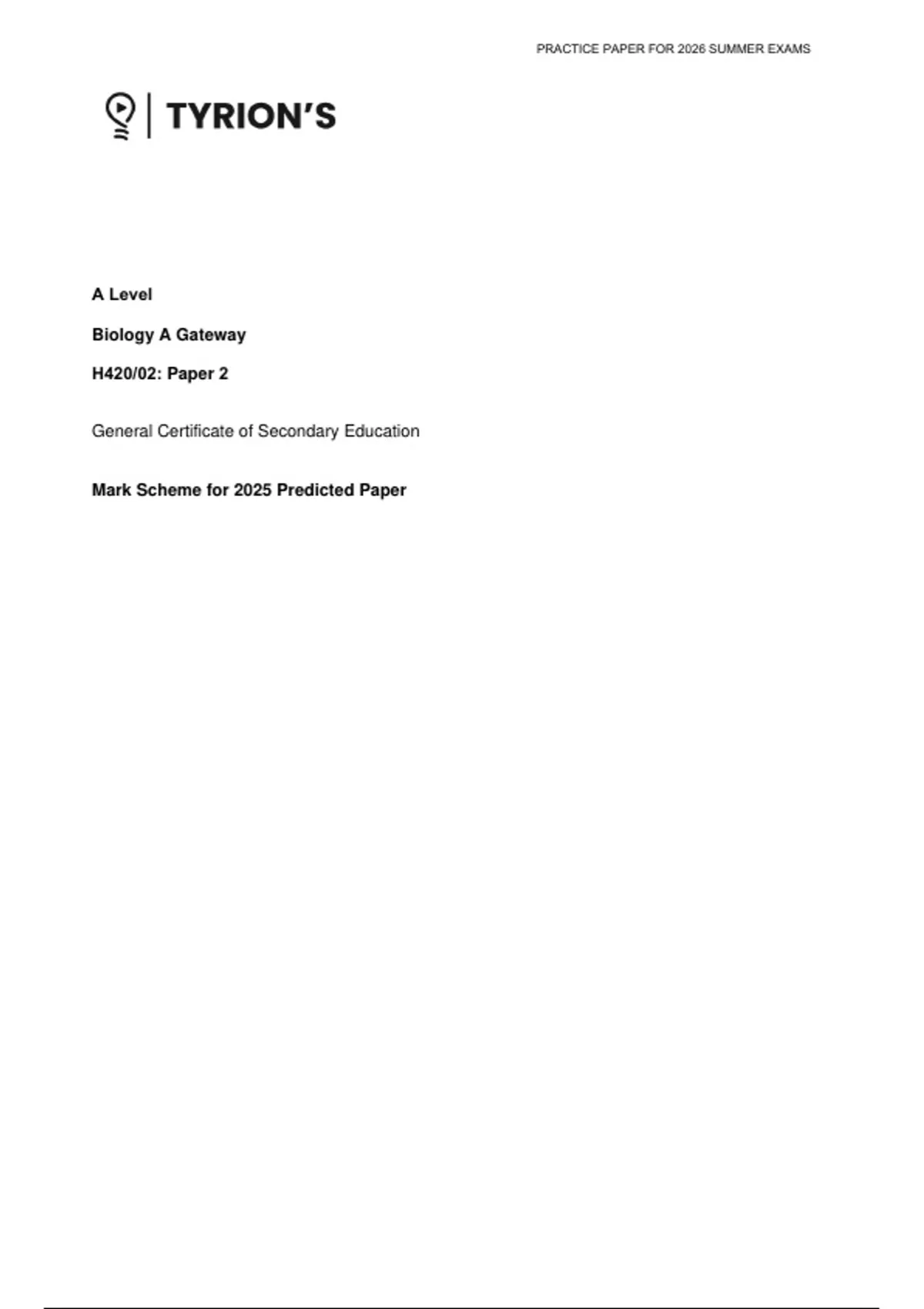 OCR AL Biology A Marking Scheme 2 2025 Predicted (1) 2026 PRACTICE PAPER