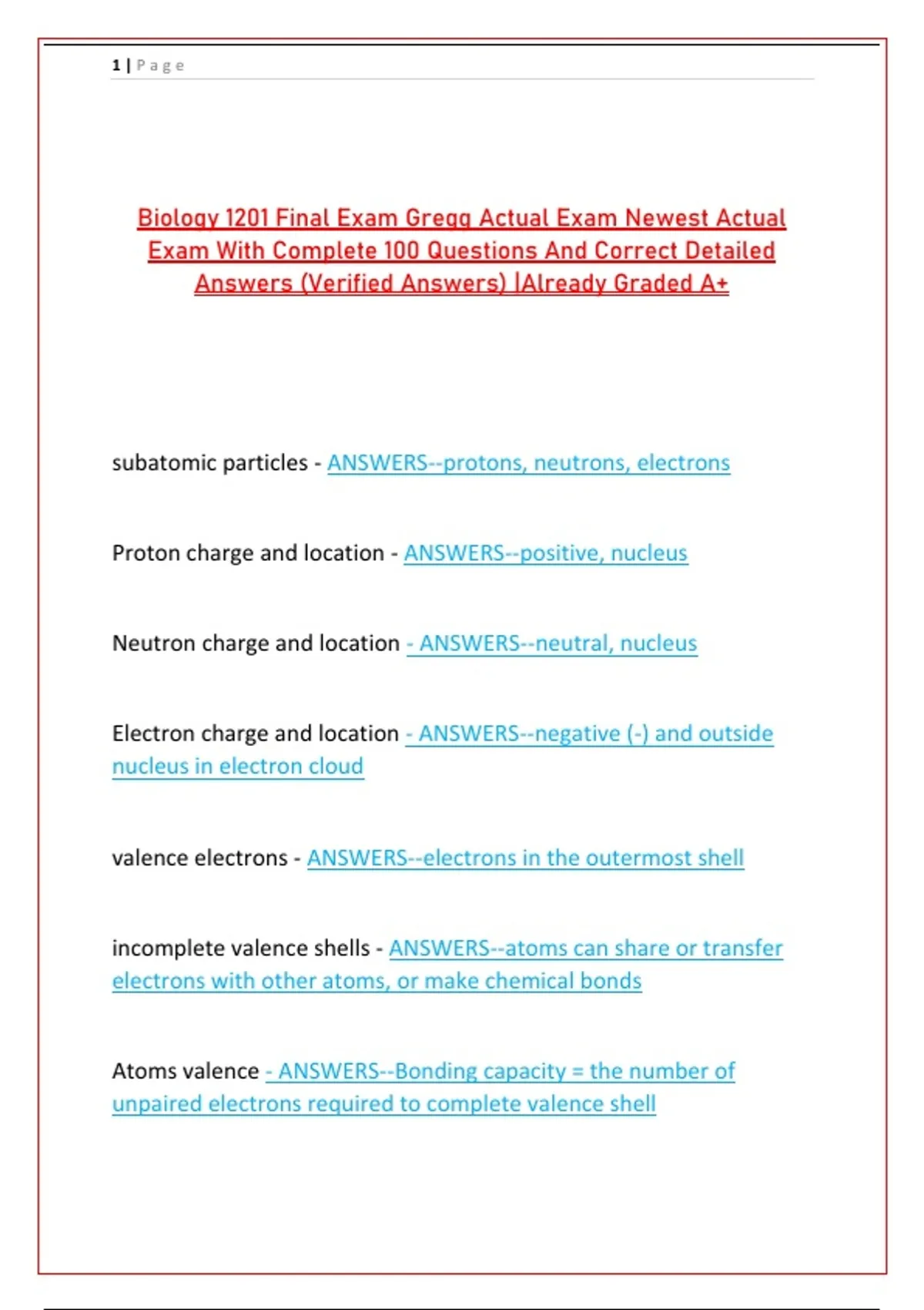Biology 1201 Final Exam Gregg Actual Exam Newest Actual