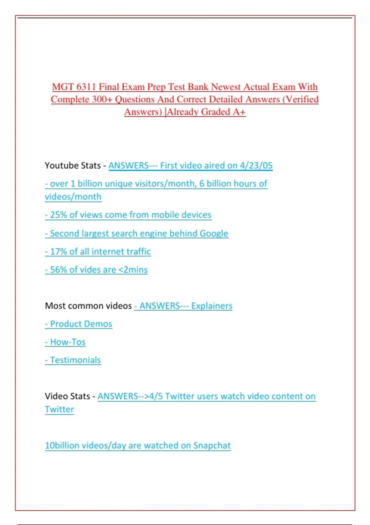 Online Video - ANSWERS--Online videos are videos residing on a