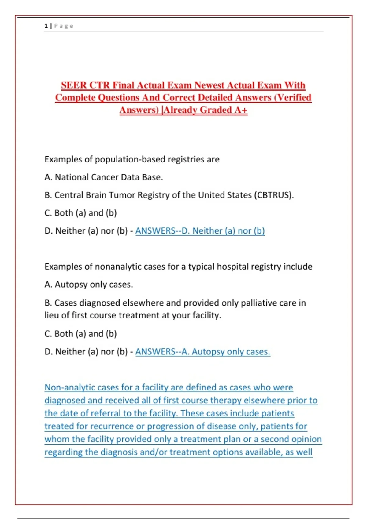 SEER CTR Final Actual Exam Newest Actual Exam With