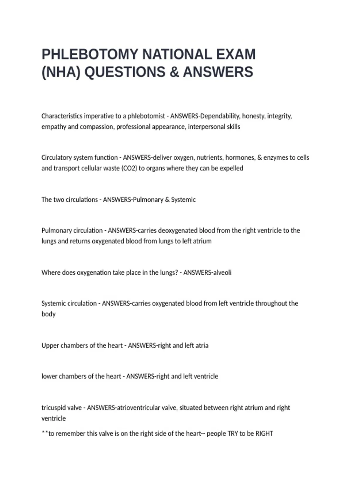 (NHA) QUESTIONS & ANSWERS