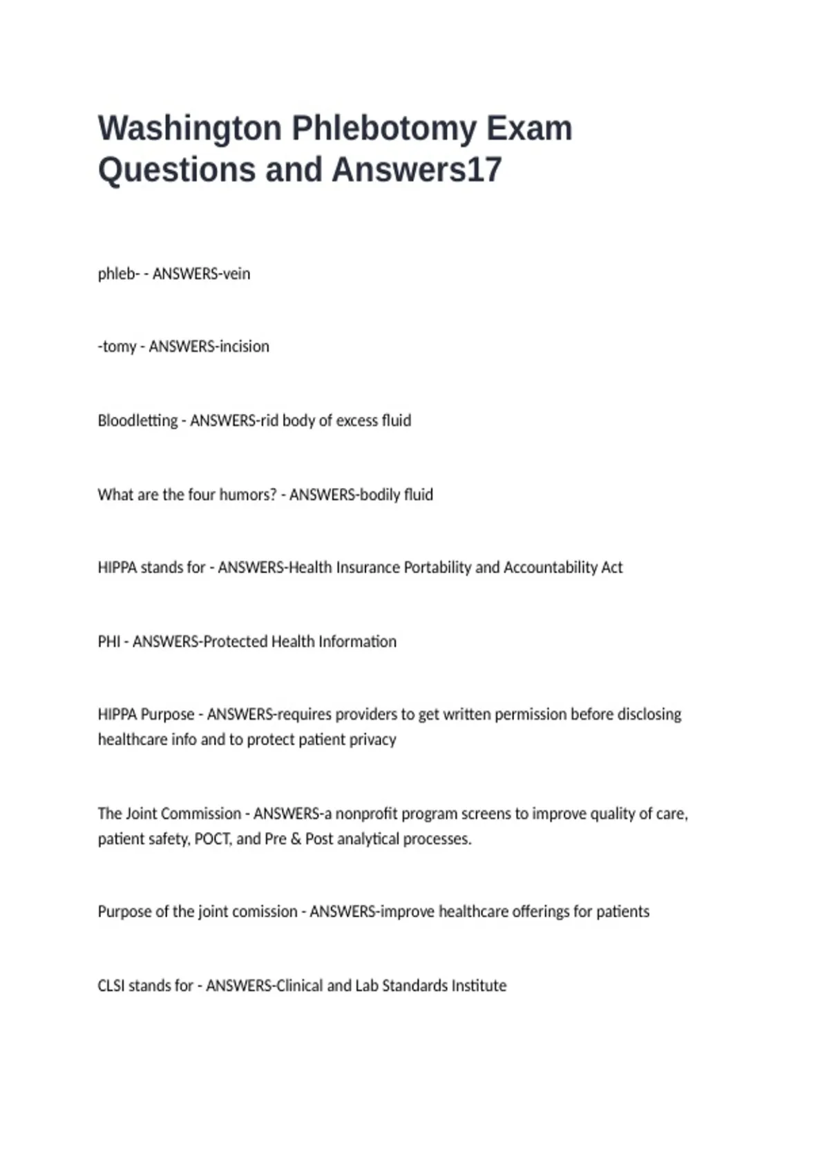 Washington Phlebotomy Exam