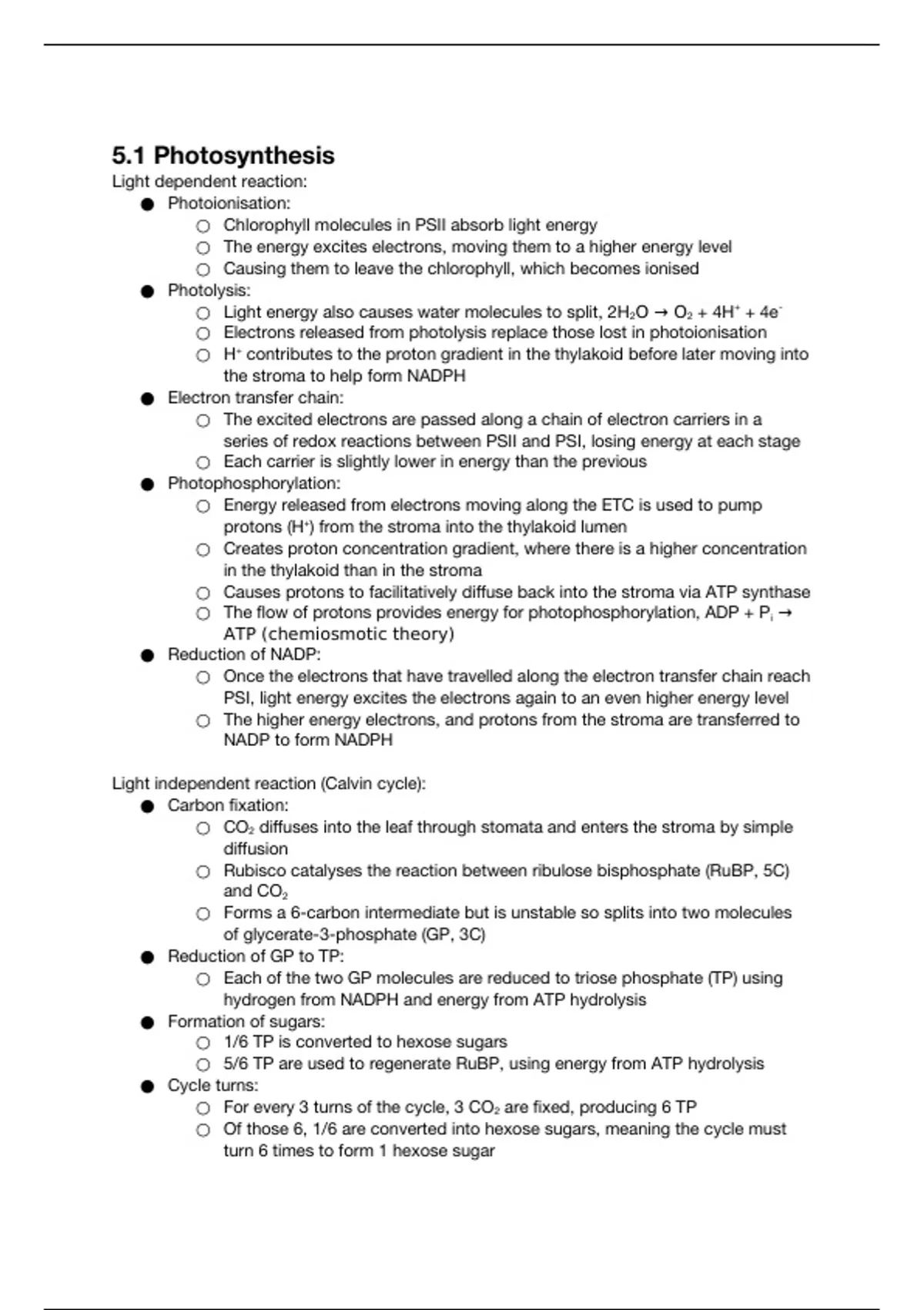 5.1 Photosynthesis