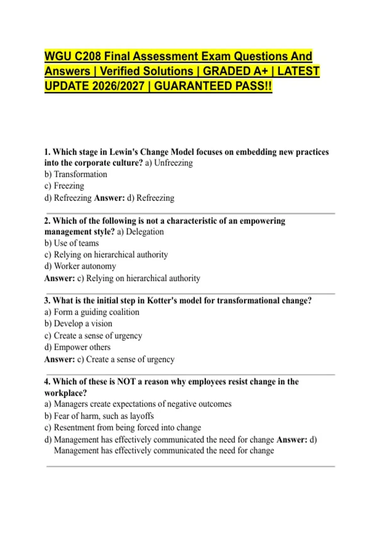d) Management has effectively communicated the need for change Answer: d)