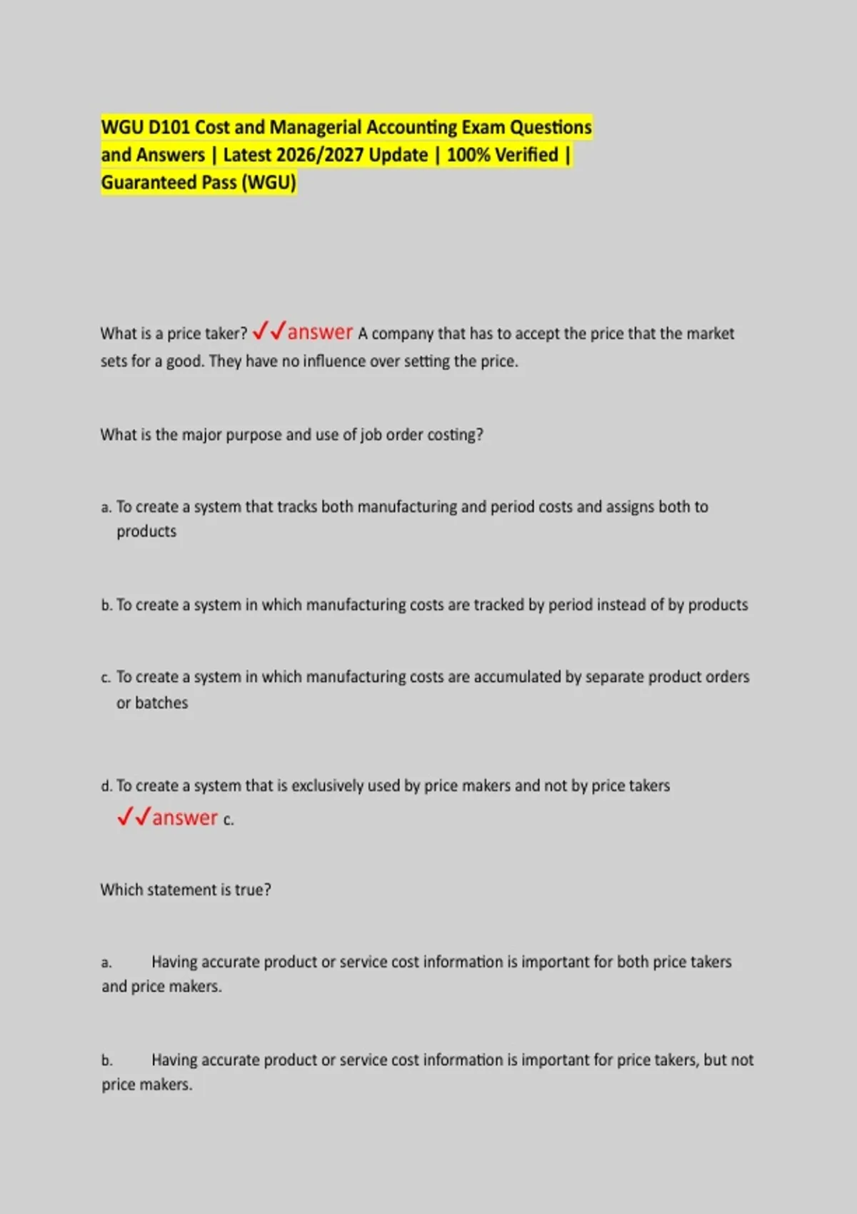 a. Having accurate product or service cost information is important for both price takers