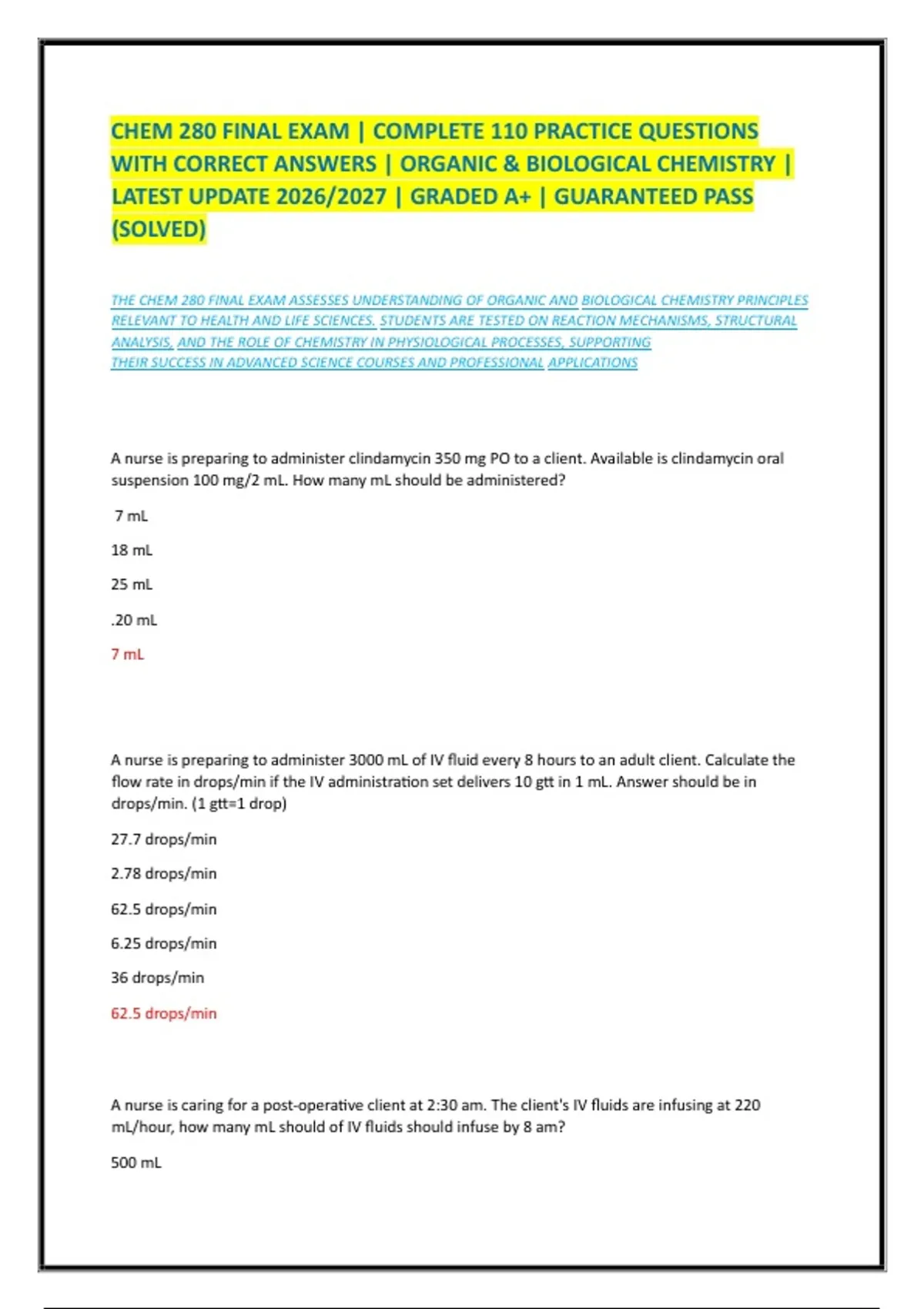 THE CHEM 280 FINAL EXAM ASSESSES UNDERSTANDING OF ORGANIC AND BIOLOGICAL CHEMISTRY PRINCIPLES