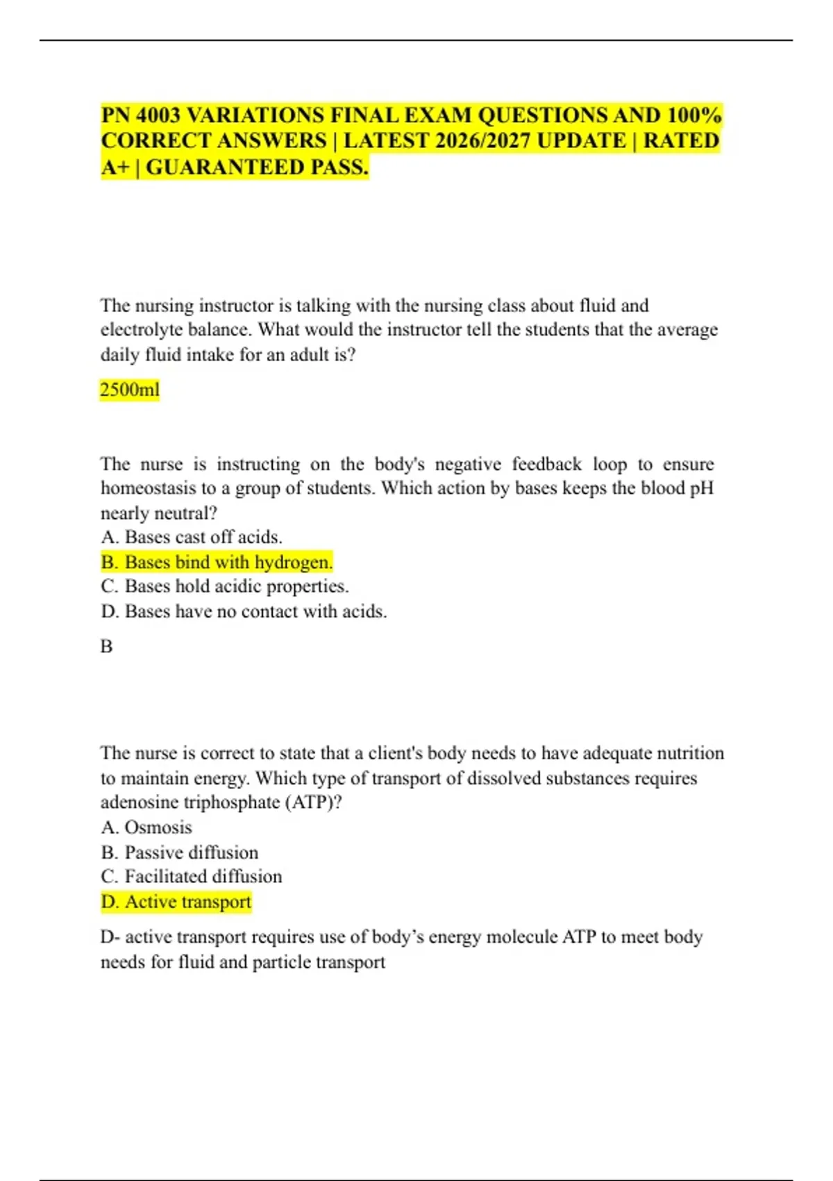 CORRECT ANSWERS | LATEST 2026/2027 UPDATE | RATED
